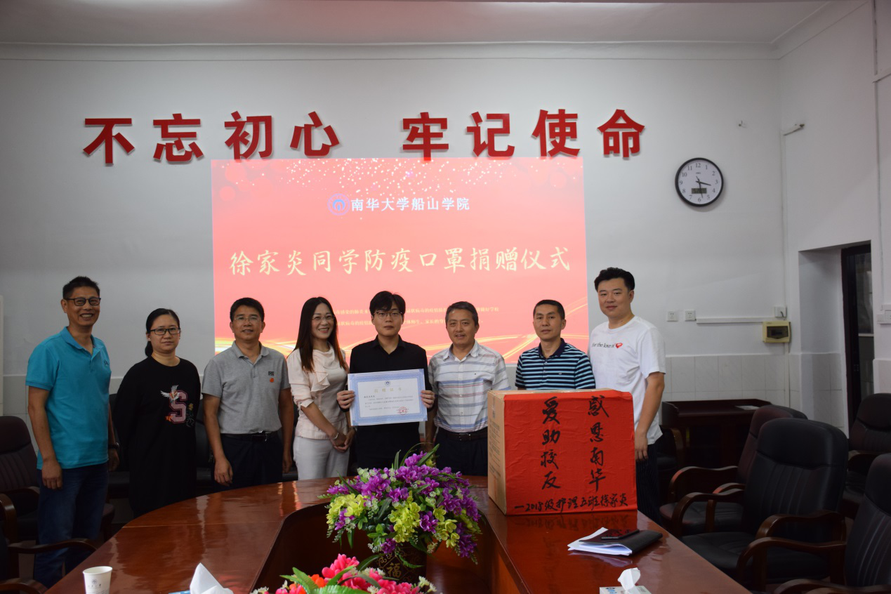 仪式上,徐家炎说:“校园疫情防控是一场严峻斗争,当学长学姐们开始返校时,我想着学院的老师们的口罩够不够用,我也想为学院出一份力,于是我决定把打寒假工攒下来的积蓄购买口罩捐赠给学院,这比起奋战那些在防控一线日夜坚守的老师,微不足道。同时,我也希望学院的疫情防控工作能够顺利开展。”