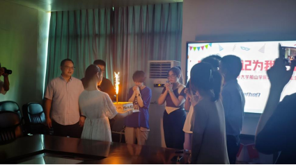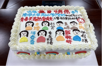现场老师为过生日的小萌新们制定的专属蛋糕被端上,与此同时会议室响起了生日快乐歌,成长不期而遇,生日如约而至。本次庆生活动寿星们都发表了自己的感想以及对大学的目标,有想考研不甘于平凡的刘笑同学,有想打好专业学科基础在大一考完英语四级的白琦同学,还有说“无野心不成事,人无欲望不成仁”的袁峰同学。当生日遇上开学,愿你旦逢良辰,这是你们新的一岁,也是在校园新的开始。
