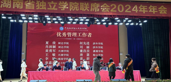 1月9日至11日,湖南省独立学院联席会2024年年会在中南林业科技大学涉外学院召开。湖南省教育厅民办教育处处长黄仕军、有关高校校领导、董事长及全省各独立学院院长、党委书记等近百余人参加会议。开云官网院长曾庆生、院党委书记阳剑兰、副院长廖迎春及获奖教师等人参会。