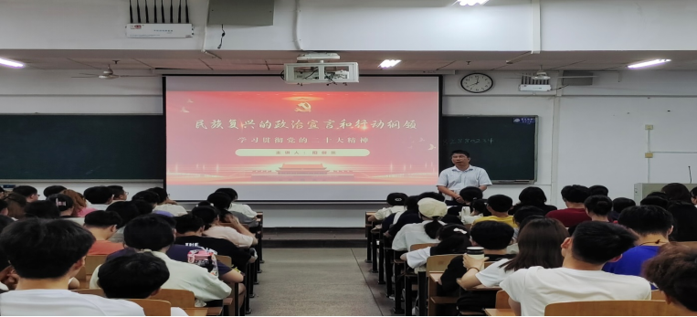 典礼结束后,阳剑兰书记以《民族复兴的政治宣言和行动纲领——学习贯彻党的二十大精神 》为题为学员讲授第一堂党课。报告从宣誓一个主题、展示伟大变革、高举伟大旗帜、明确中心任务、作出战略部署、找到第二答案、坚守底线思维等七个方面,宣讲和阐释了党的二十大的主题和主要成果、过去5年的工作和新时代10年的伟大变革、全面贯彻习近平新时代中国特色社会主义思想、以中国式现代化全面推进中华民族伟大复兴、全面建设社会主义现代化国家的目标和任务、党找到了自我革命这一跳出治乱兴衰历史周期率的第二个答案、敢于斗争善于斗争勇于应对风险挑战等重要内容。
