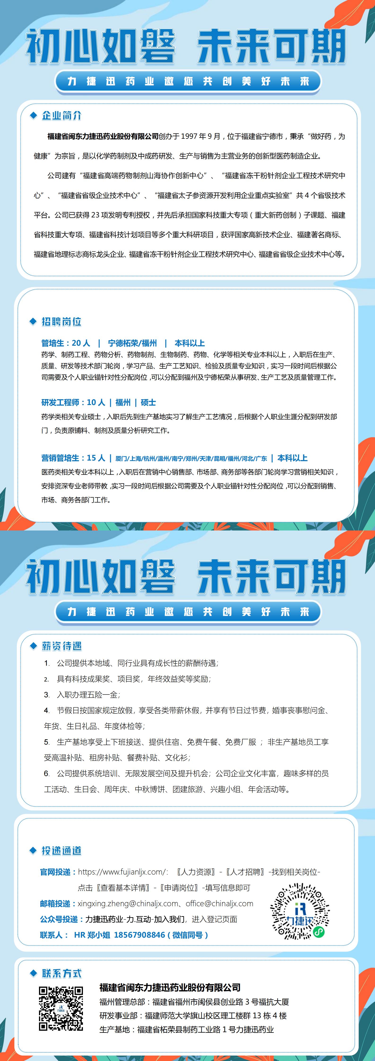福建省闽东力捷迅药业股份有限公司2024届校园招聘
