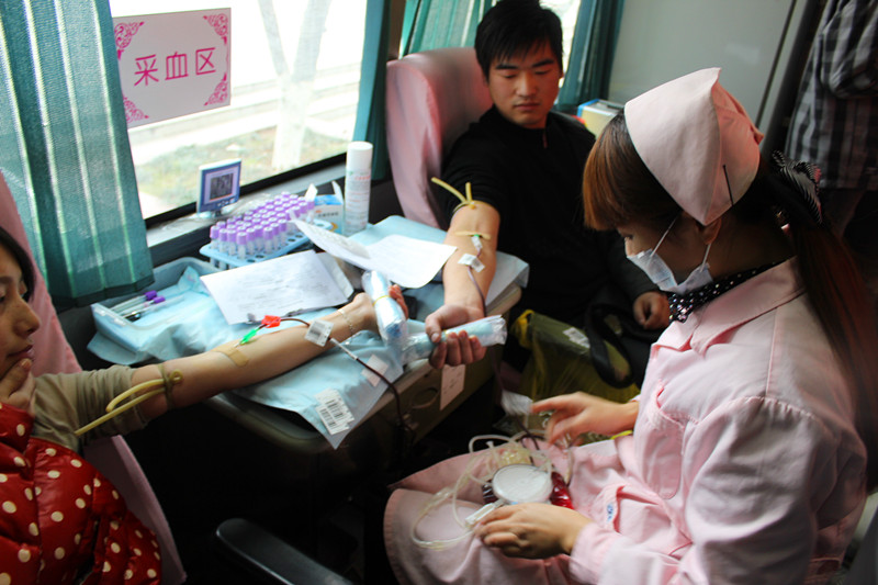 同学们积极地参与到献血活动当中。