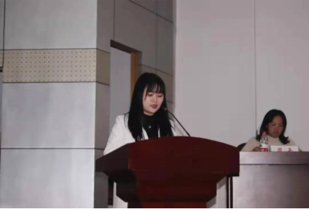 新一届团委委员会委员代表冯姝贻同学 新一届学生委员会委员代表高鹏同学发言
