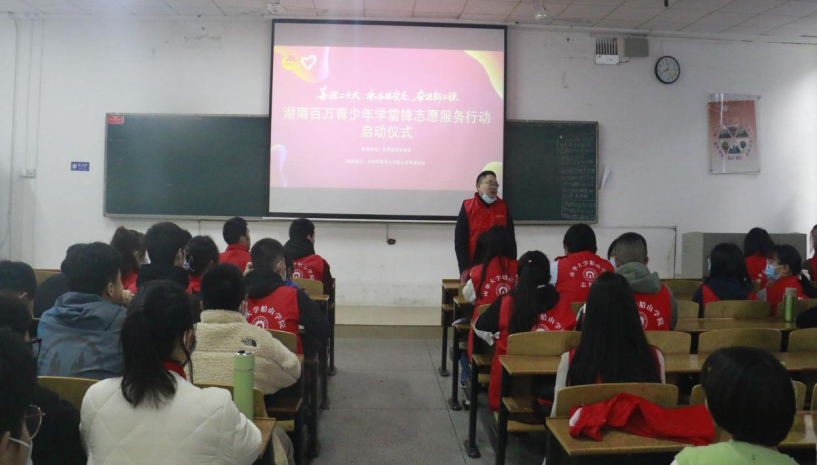 为贯彻落实共青团湖南省委,关于深化实施“雷锋家乡学雷锋”百万青少年志愿服务行动的方案,动员和引导我院团员青年和志愿者深入学习雷锋精神,以实际行动喜迎党的二十大和庆祝建团100周年,积极号召广大志愿者参与到行动中来。2022年3月4日12时30分,我院“喜迎二十大永远跟党走奋进新征程”学雷锋志愿服务活动启动仪式在开云kaiyun登录入口第一教学楼112教室隆重举行。院党委副书记刘期彪老师,院学生工作办主任周英老师,院团委书记旷思佳老师以及各班学生志愿者代表参加本次大会。本次会议由院团委副书记冯姝贻主持。
