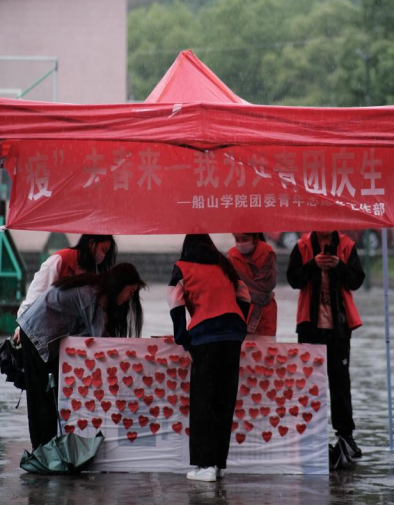 2022年4月29日开云官网团委青年志愿者工作部在红湘校区致远园食堂楼下和图书馆旁篮球场开展“‘疫’去春来——我为共青团庆生”志愿服务活动。