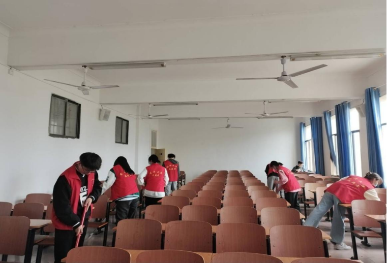 爱国卫生劳动实践在于“南华环境守卫者”们的辛勤付出,也体现在教室打扫同学们的一丝不苟中。从5月27日到5月29日,身着红马甲的志愿者穿梭在核学楼、一教的各个教室,将桌椅摆放整齐,窗户抹得洁净透明,黑板擦得光滑透亮……他们是教室的“守护者”,用行动阐述劳动教育精神。
