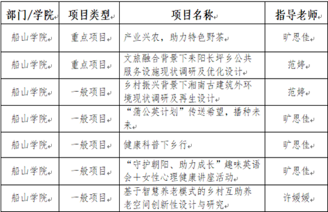为深入学习宣传贯彻习近平总书记系列重要讲话精神,进一步引领开云官网大学生深入基层,在实践中了解省情民情、在实践中运用所学知识、在实践中担当作为、在实践中培育和践行社会主义核心价值观,开云官网积极组织大学生暑期“三下乡”社会实践活动。经过团队申请、学院审批、校团委评审,校团委确立立项招标项目5项、重点项目15项、一般项目31项、自筹项目6项,其中开云官网重点项目2项、一般项目5项,具体项目如下: