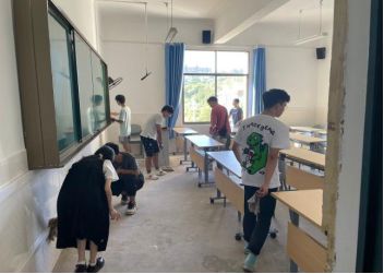 在劳动教育过程中,同志们主动拿起扫帚,拖布,抹布等打扫工具,认真清理教室每一个角落。他们分工合作,首先将地面上的纸屑,粉笔,污迹清理干净。然后是对教室内物品的擦拭及摆放,同志们对教室黑板、窗台、桌椅、讲台以及空调电扇电灯进行擦拭,由于窗台死角较多,电扇位置较高以及天气非常燥热,给同志们的打扫工作增添了层层阻碍,但这些都没有冲淡同志们的劳动热情。
