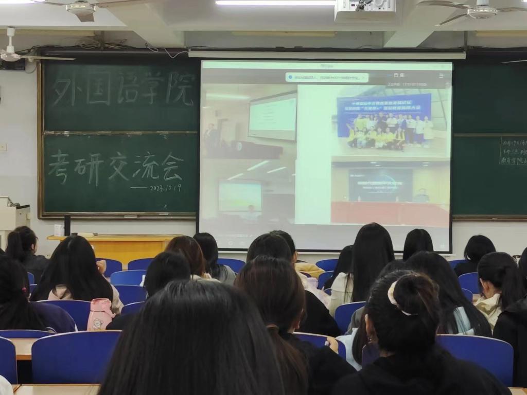 10月19日下午14点,beat365官方网站英语教学部在综合楼212举办了2023年考研经验交流会,旨在帮助学生了解研究生入学考试备考的过程。与会人员为英语专业2021和2022级学生。