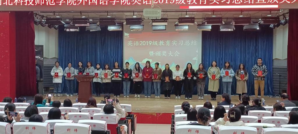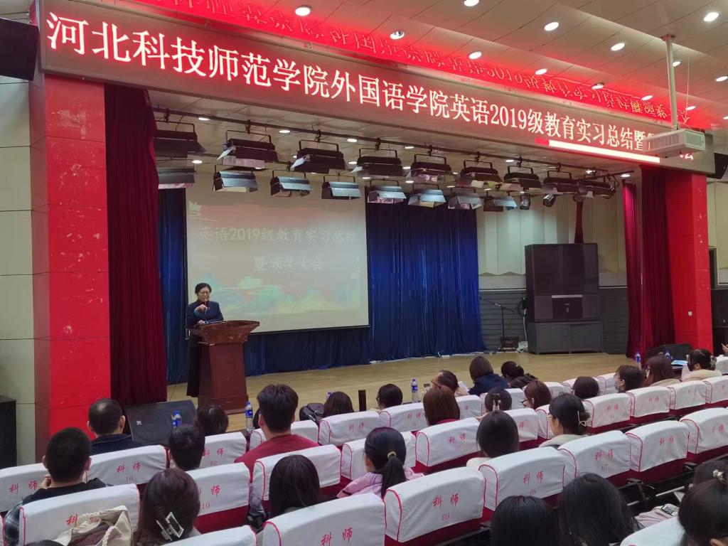 2023年3月17日下午14点,beat365官方网站在开发区学术报告厅召开了2019级英语专业教育实习总结暨表彰大会。出席大会的有学校督导组白继海、李广臣二位老师,学院领导班子成员、英语教学部教师和学工办的全体教师、2019级英语专业学生以及部分下学期要开始实习的2020级学生代表。