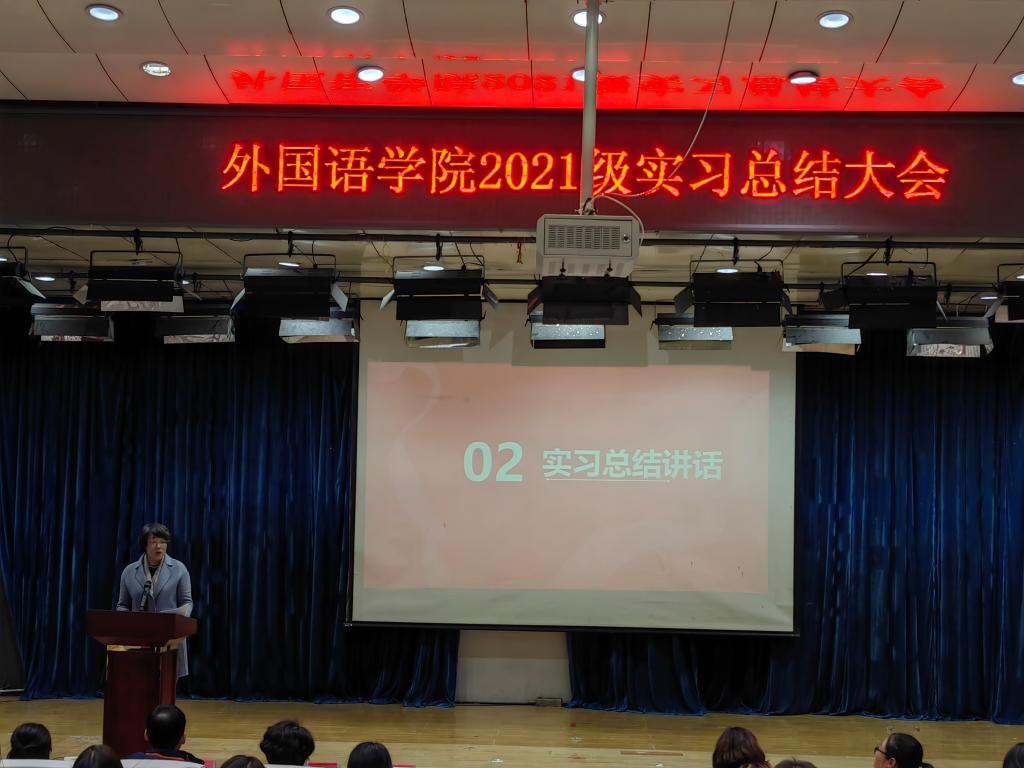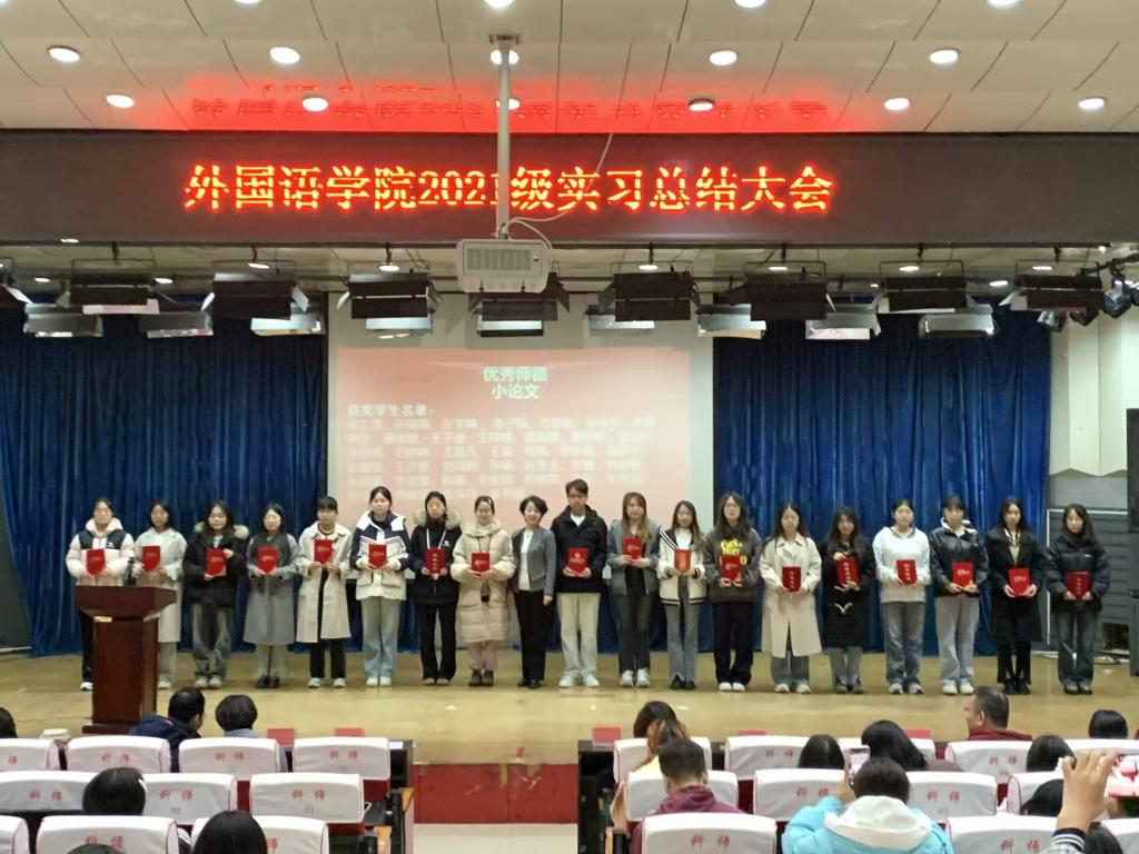大会首先通过播放实习视频的形式让师生共同回顾了实习过程中让人难忘的美好瞬间。接着,崔海英院长对大家的实习进行了总结,她对英语2021级学生的教育实习表现给予了充分的肯定,指出新时代对教师的角色提出了新的要求,同学们要与时俱进,不断打磨自己,在知识、能力、素养方面不断提升自己,为成为“四有”好老师不断努力奋进。大会第三项是给在实习过程中表现优异的同学颁奖,张之萍、王许诺等39人获得优秀师德论文奖,周千颂、赵彬州等39人获得优秀教育教学案例奖,张译丹、黄奕琛等33人获得了教学小视频比赛的一、二、三等和优秀奖。之后,董昀玥和樊美晨作为获奖学生代表跟同学们分享了自己对师德的理解和感悟,讲述了自己在实习期间践行师德、立德树人的真实故事,让大家深深感受到教师肩上的重任。最后,beat365官方网站范群英书记作总结性发言。范书记表达了对2021级实习生的殷切希望,希望同学们能够扛起为党育人、为国育才的教育重任,在教育事业中实现自己的人生价值。同时,希望同学们能够审时度势,明确自己的人生方向,做好职业规划。