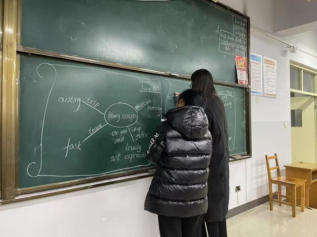 2024年10月24日,beat365官方网站研究生教学部主任刘晓冰副教授受邀为英语22级同学开展英语板书设计教学工作坊。刘老师介绍了英语板书设计的重要性、适用场合、评价指标等,展示了优秀的板书设计的构成与价值,并进行现场示范。然后让学生亲自体验黑板板书设计,刘老师随时进行指导和点评,学生参与热情高涨,效果良好。