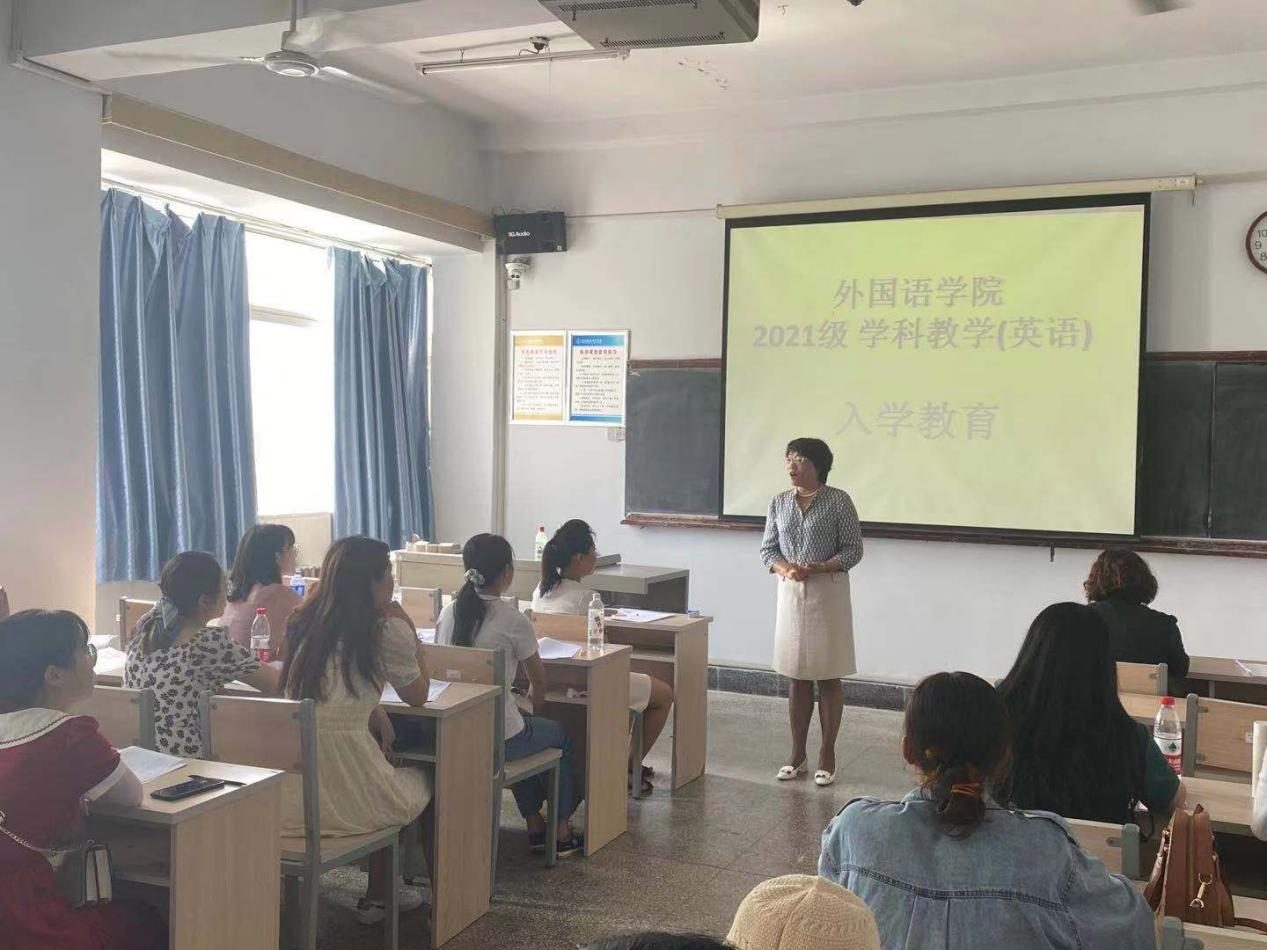 2021年9月10日上午beat365官方网站在秦皇岛校区举行了硕士研究生新生入学教育,参加本次活动的有:beat365官方网站院长崔海英、书记邵丽君、副院长范学荣、教学部主任刘晓冰、硕士生导师孙秋月、研究生秘书张新月,及全体2021级学科教学(英语)专业硕士研究生。范学荣主持会议,崔海英做了重要发言。