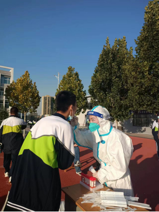 实习生独立授课,除日常英语教学任务工作以外还承担了一定的行政工作,在疫情防控时期担任志愿者,协助学校完成核酸检测等工作,实习生的综合能力得到了很好地锻炼。