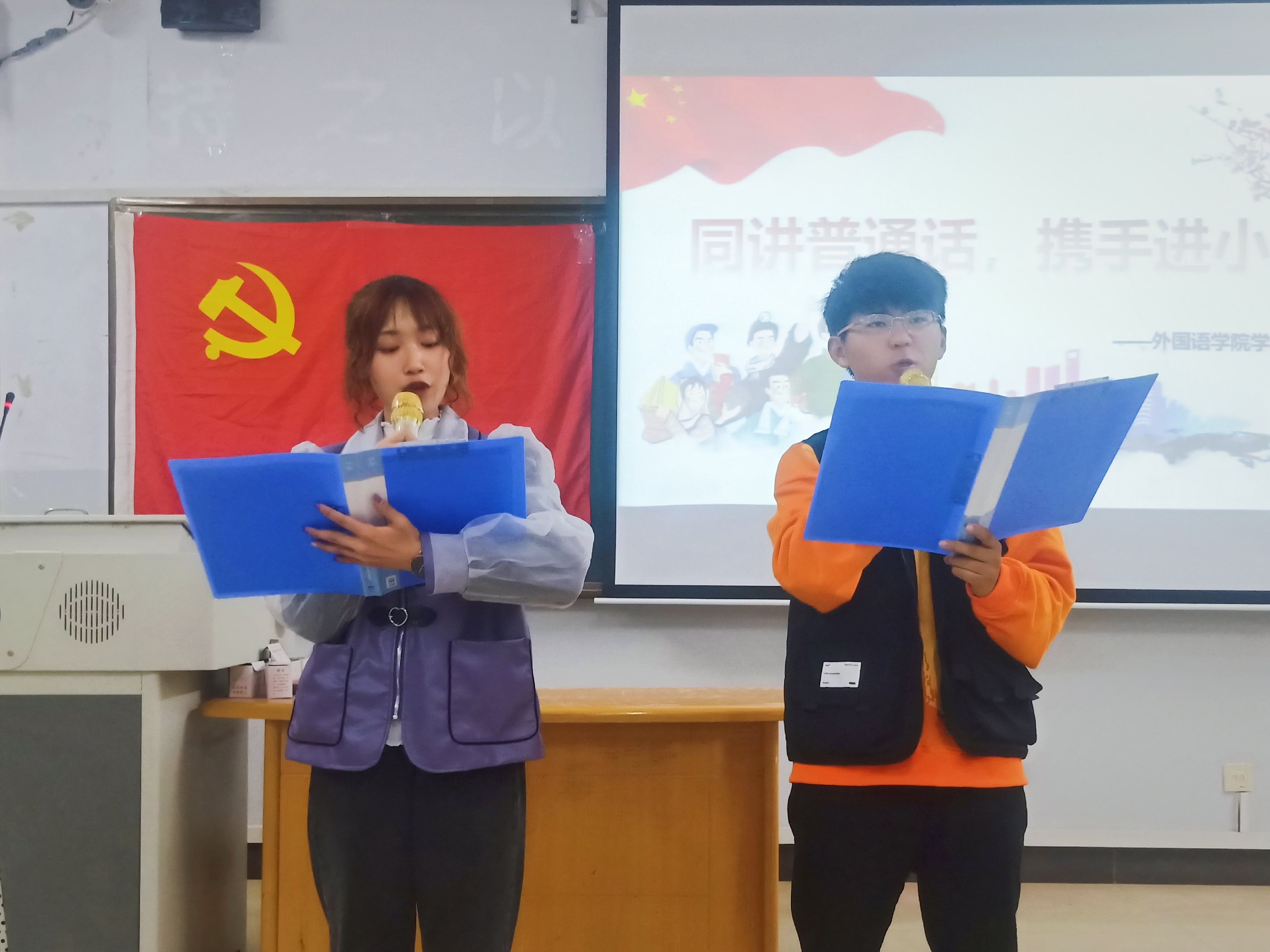 比赛伊始,由主持人致开场词并宣读比赛规则。紧接着,选手们各个热情激昂,言辞恳切,将自己对于民族的热爱及对普通话的理解融于文字之中。激昂慷慨的诗朗诵,感情真挚的演讲,行云流水的书法,无一不展示出普通话独特的语言魅力。