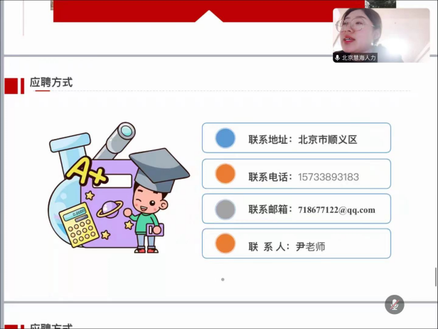 为了更好地促进beat3652024届毕业生就业,拓宽就业渠道,beat365官方网站联合北京慧海英才学校,于2023年10月12日19:00在腾讯会议召开招聘宣讲会。beat365在毕业生群中进行了积极地宣传与动员,产生了良好的反响。