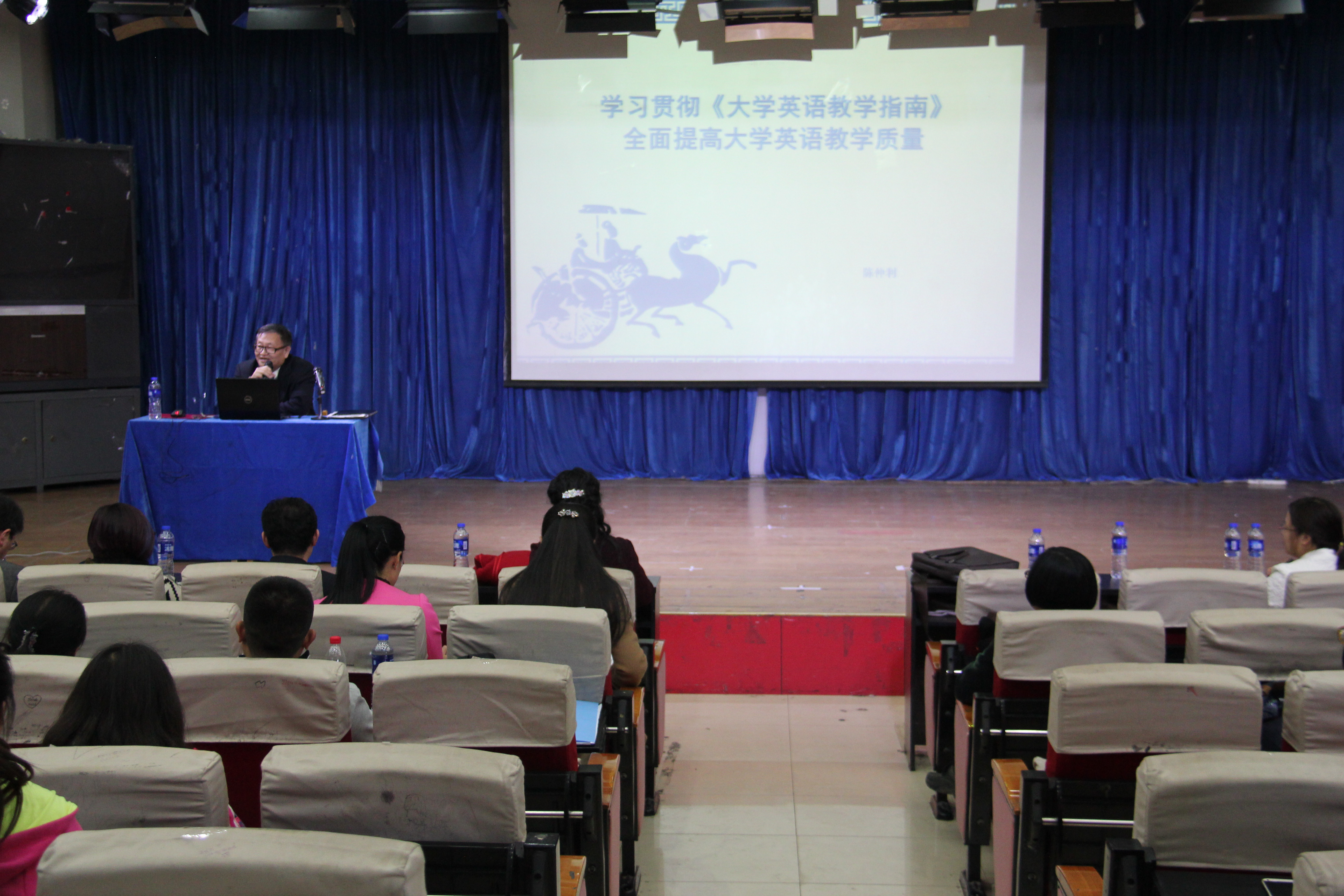 2016年4月14日下午,beat365官方网站邀请教育部高等学校大学外语教学指导委员会副主任,全国大学英语四、级考试委员会委员,全国独立学院外语教学协作委员会主任陈仲利教授来beat365作题为“学习贯彻大学英语教学指南,全面提高大学英语教学质量”的报告。东北大学秦皇岛分校、东北石油大学秦皇岛分校、环保学院、建材学院等秦皇岛各高校英语教学负责人和教师参加了此次报告会。