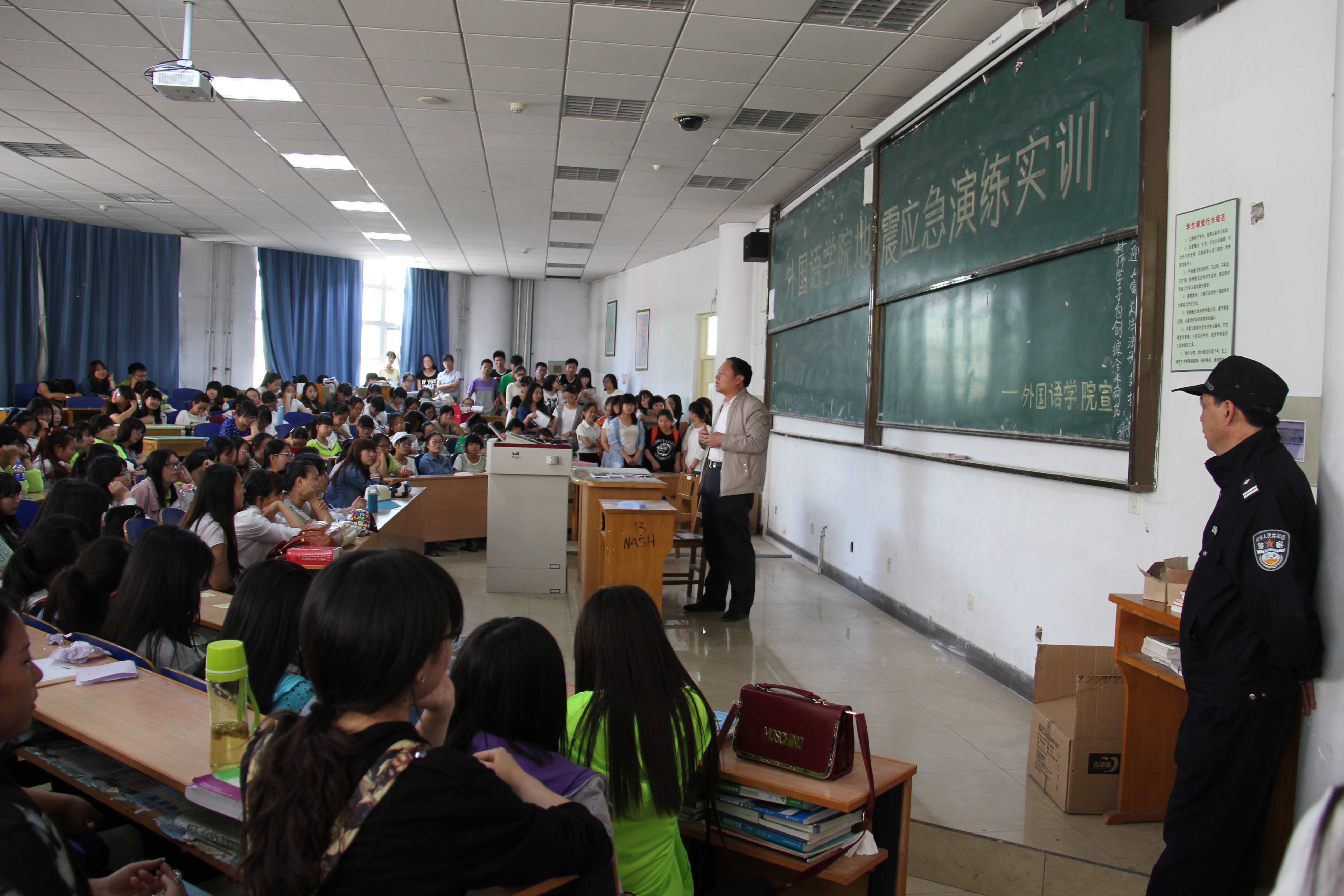 为落实学校《星级“平安校园”建设工作实施方案》,响应学校和保卫处关于开展地震应急演练活动的通知要求,beat365官方网站于5月21日中午集中进行地震应急演练和紧急疏散演习。活动邀请到保卫处副处长张明权老师和张明前科长对地震应急和紧急疏散的知识和技术要领进行培训。张明权老师首先详细讲解了学生处于教室、宿舍和公共场所时,如何观察周围环境,寻找避震场所和逃生通道。同时,对学生们进行自救和互救环节的要点进行了指导。之后,beat365官方网站地震应急演练正式开始。组织教师发出“发生地震了”的指令后,告知学生“地震了,不要慌,快避震”,要求学生保持镇静,头脑清醒,就近躲在安全的位置,并及时打开教室两侧通道。在短暂的避震后,组织老师指挥学生,分三个方向有序通过教学楼门口疏散逃生到楼外空旷的广场。最后,参加演练的班级清点人数后,宣布地震紧急演练结束。本次地震应急演练和紧急疏散演习不但提高了师生的安全意识,提高了大家安全防范意识和应对突发事件的能力。一名参加演习的学生活动结束后说,通过参加这场演习,让自己应对突发事件时有了一定的心理准备,听从现场指挥,及时寻找安全通道,并在自救的基础上实现互帮互救。