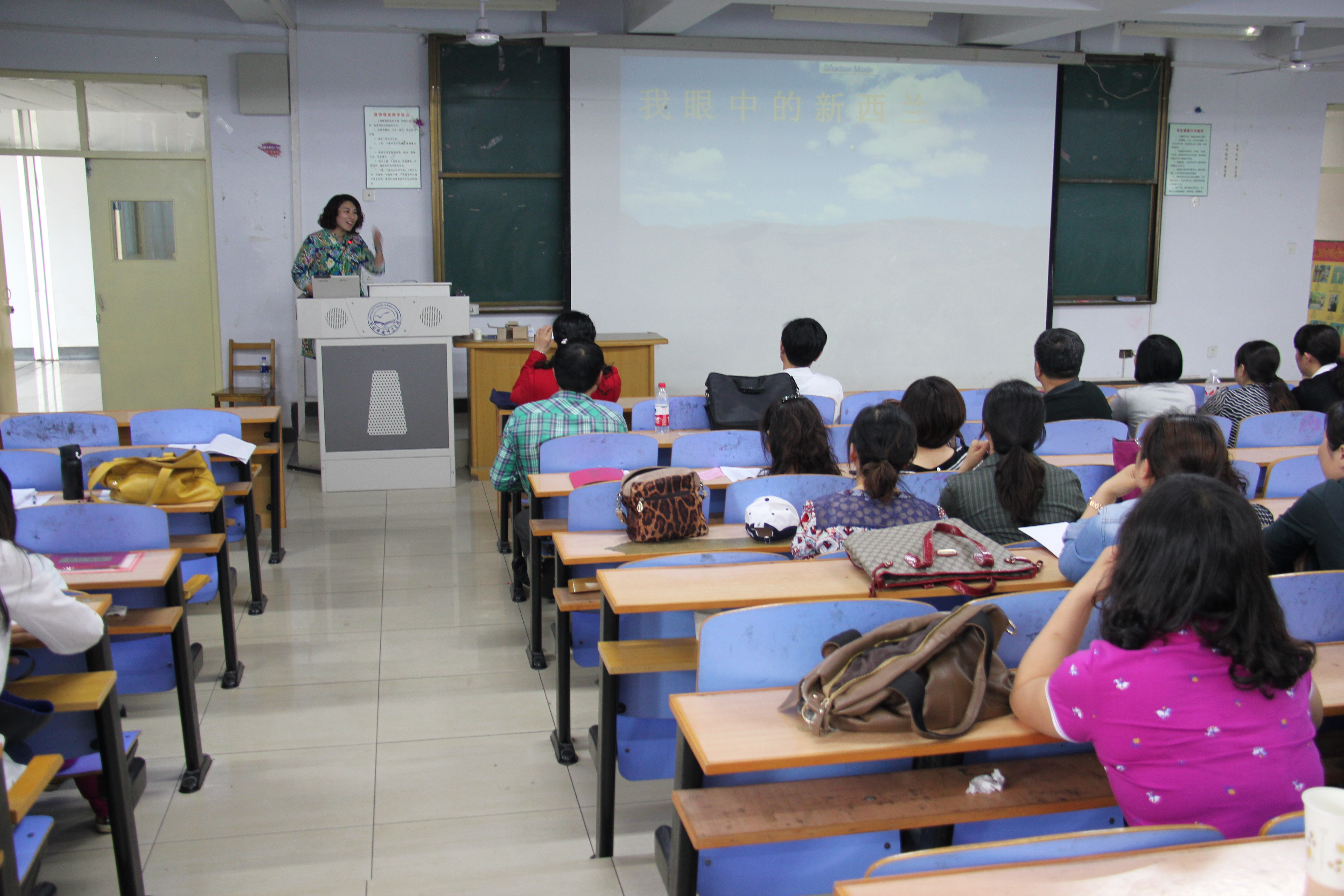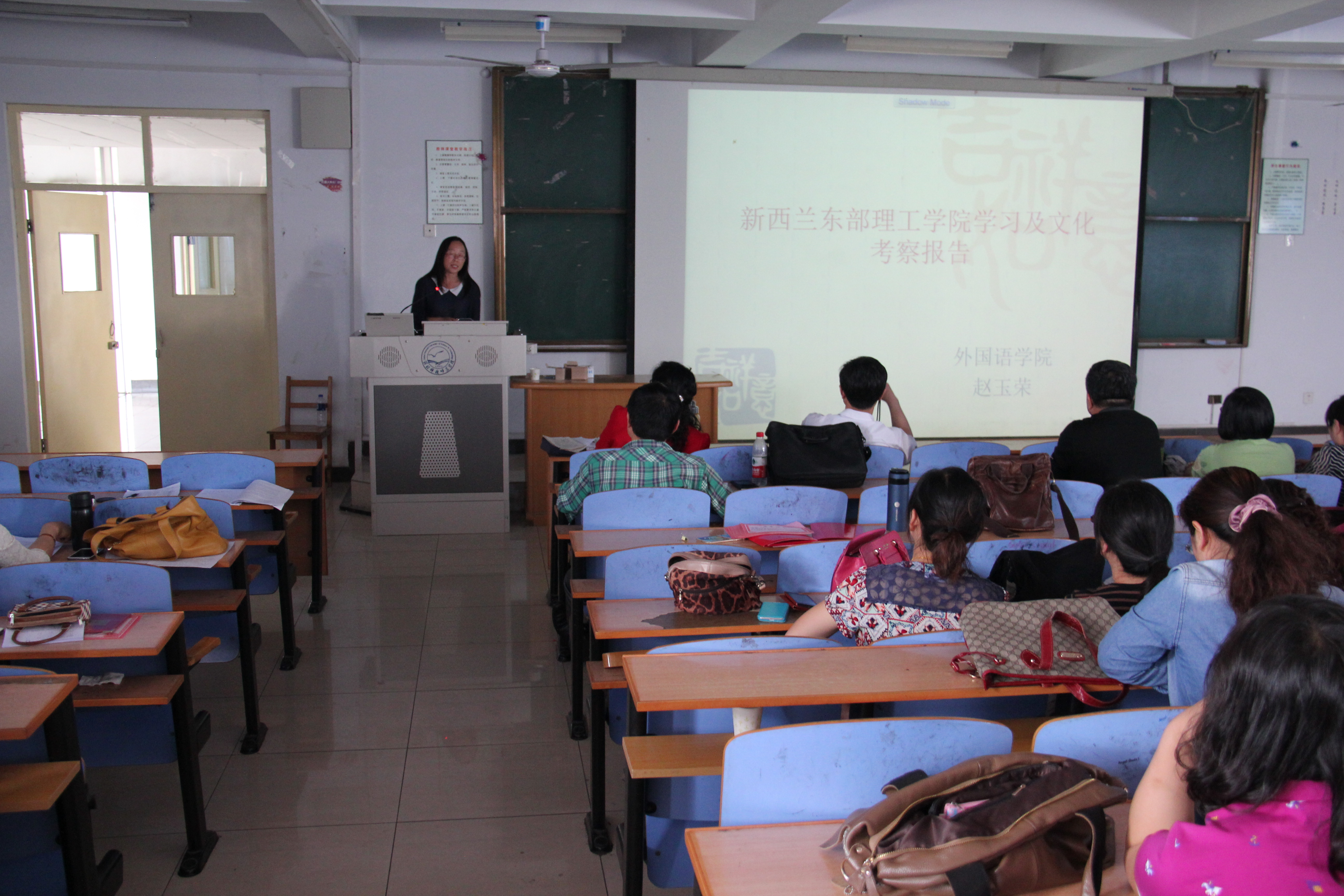 会议由邵丽君院长主持,三位新西兰培训归国教师李爽、顾庆媛、赵玉荣依次做了汇报总结。李爽老师主要从生活见闻方面向在座的老师们介绍了新西兰的不同;顾庆媛老师主要从文化差异方面入手,让大家领略到了异国文化;赵玉荣老师主要向大家介绍了学习内容、课程设置和新西兰的社会文化。