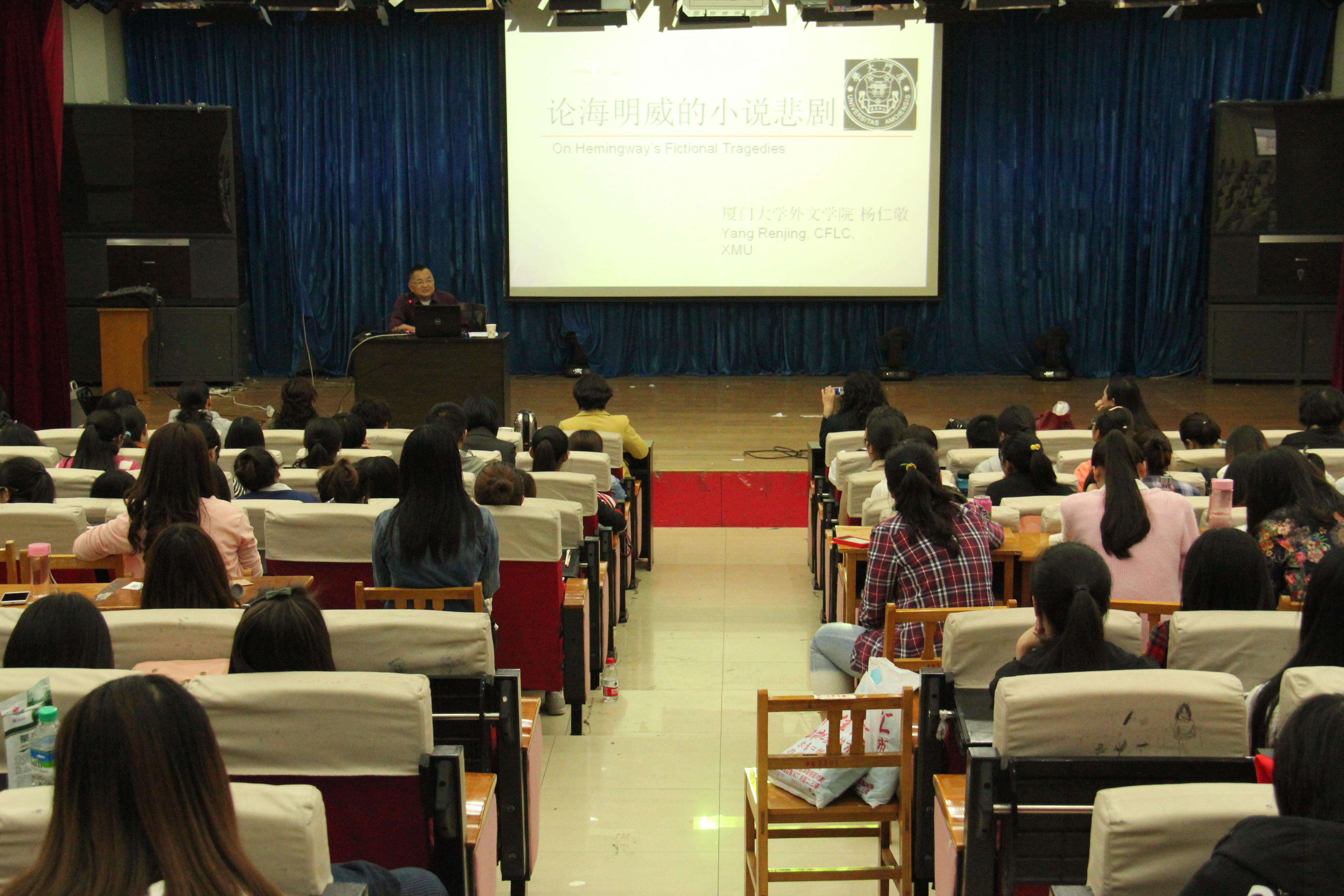 杨仁敬教授根据自己多年对海明威小说的研究,结合小说的时代背景,总结出海明威作品中的各种悲剧,通过对这些悲剧的解析使广大师生对海明威的小说有了一个系统的了解,更激发了大家学习阅读海明威小说的热情。