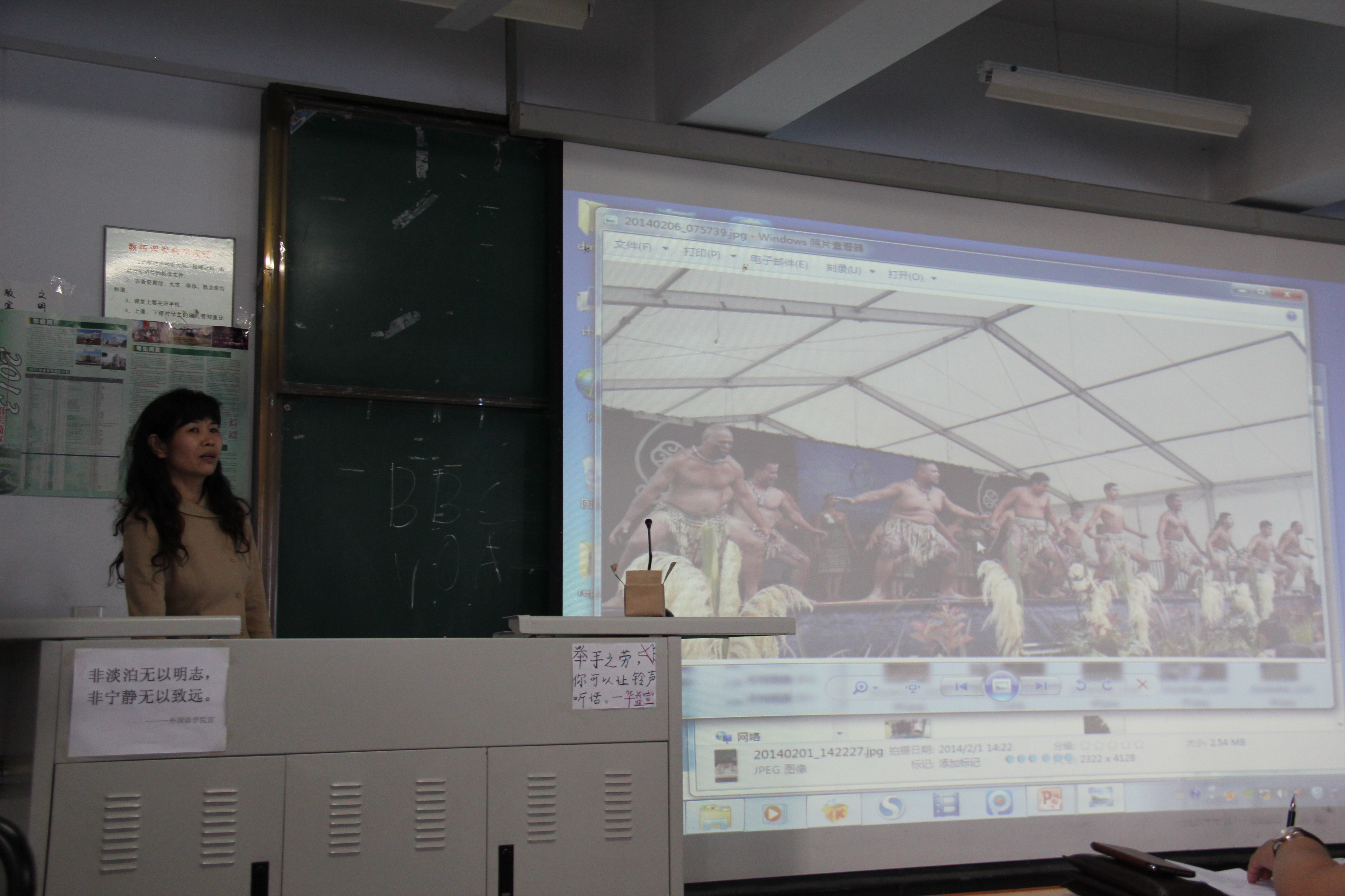 会议由邵丽君院长主持,两位海外归国教师崔海英、张喜荣分别做了总结汇报。崔海英副院长主要从语言学习和语言应用方面介绍了新西兰之行的收获。在新西兰学习的三个月里,崔院长细心的总结了新西兰英语中的发音规律与不同,在住家生活中体会到了英语语言的魅力。张喜荣老师着重从课程学习和跨文化体验方面介绍了自己的收获。