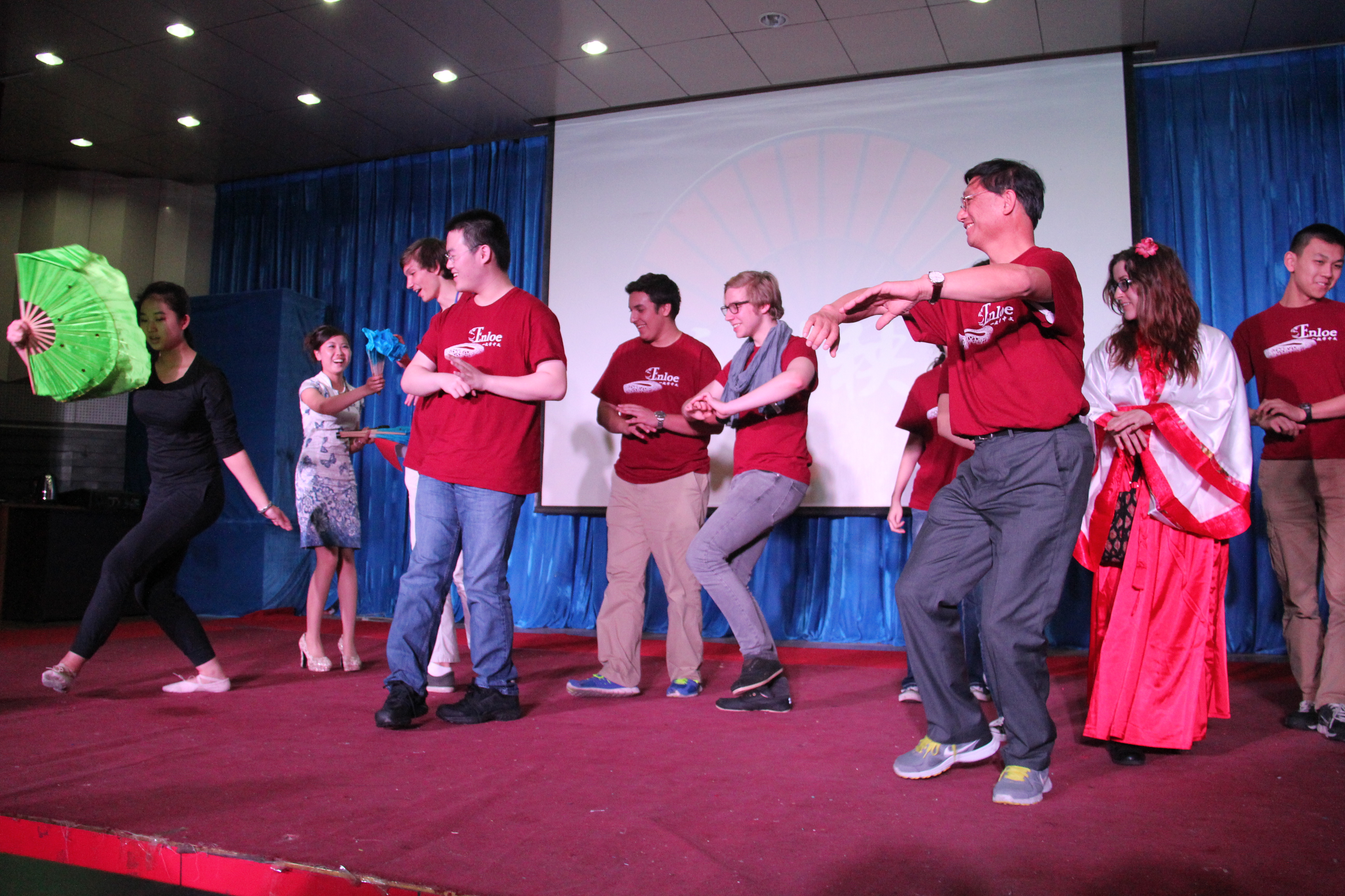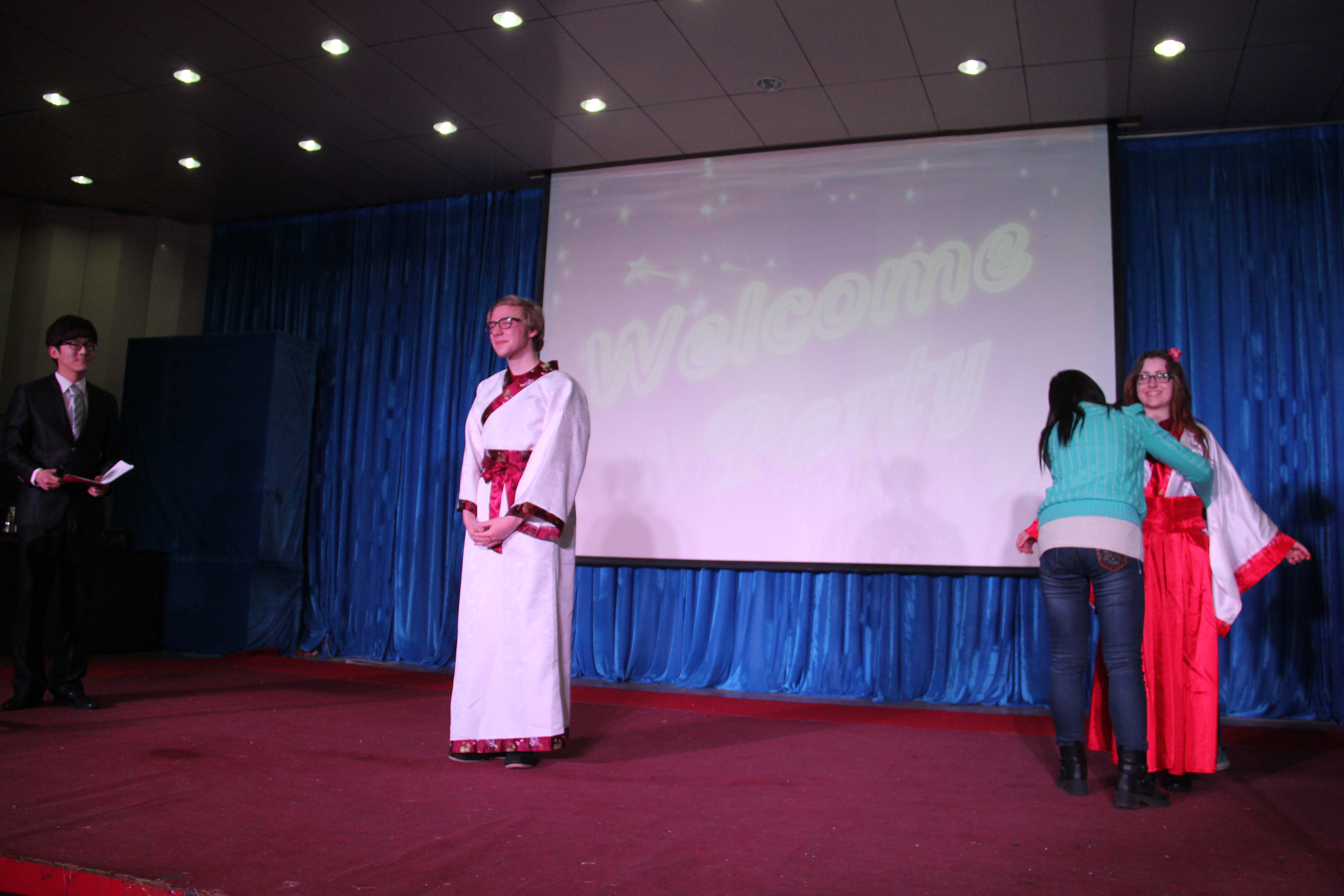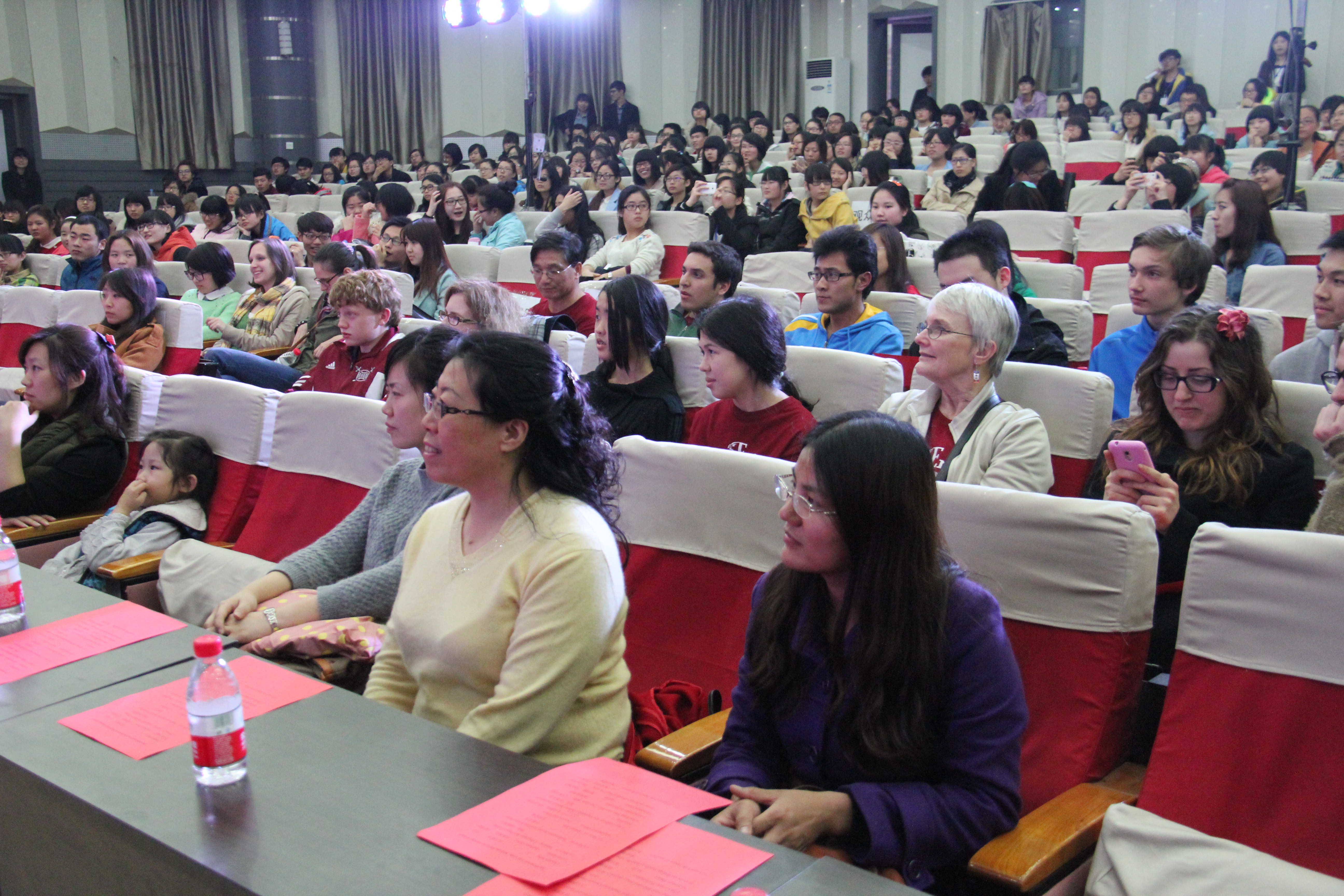 2014年3月28晚7点30分,beat365官方网站beat365官方网站在综合楼学术报告厅举办了主题为“欢迎美国友人”的晚会。来自美国Enloe高中的14名师生、beat365官方网站院长邵丽君、国际交流处郁洋老师及beat365官方网站的同学们一起观看了本次晚会。