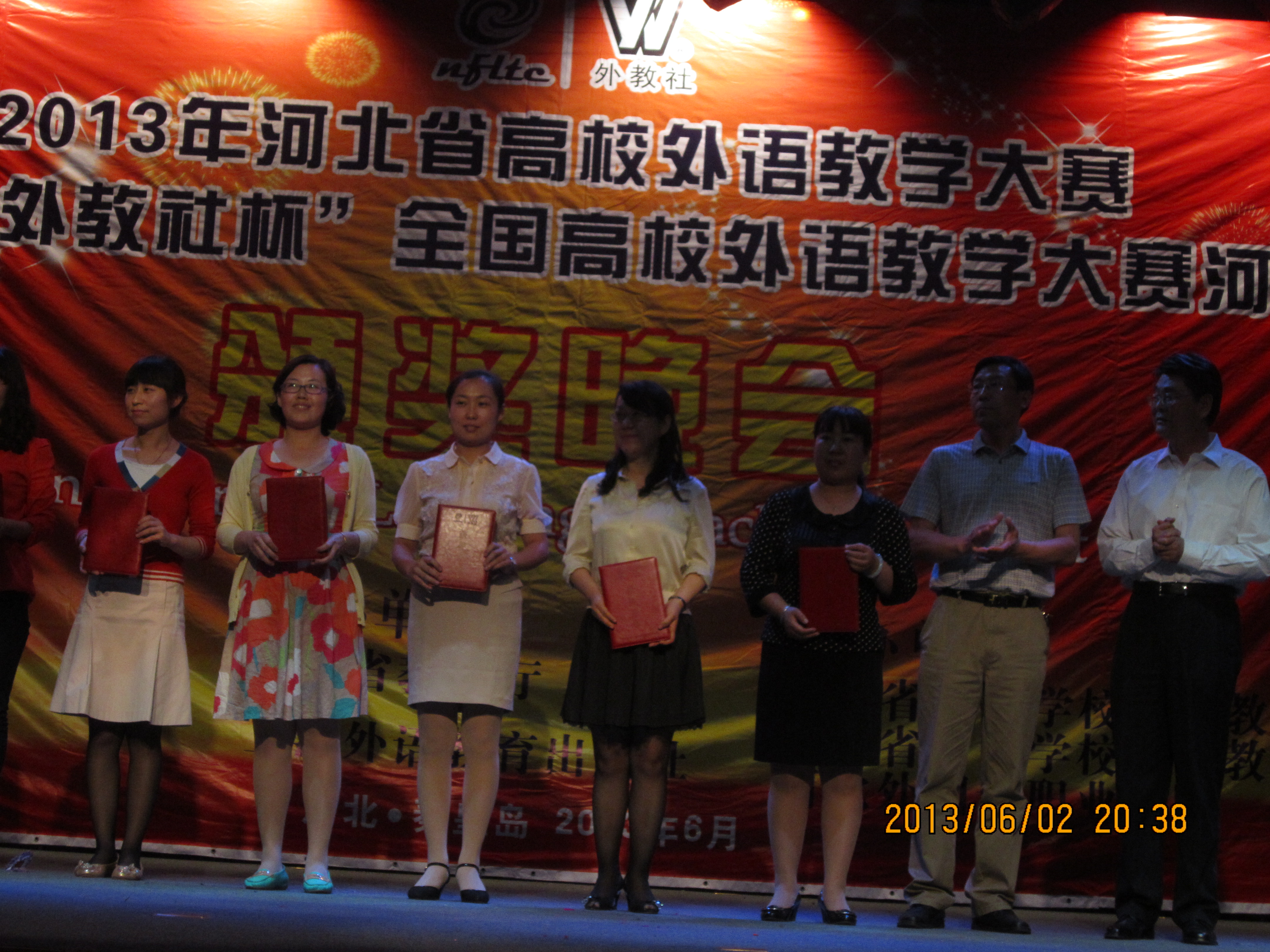beat365教师在2013年6月1-2日河北外国语职业学院举行的河北省高校外语教学大赛暨第四届“外教社杯”全国高校外语教学大赛河北赛区总决赛中表现优异,经过激烈角逐beat365beat365官方网站教师张琛获得大赛二等奖,beat365官方网站教师韩庆山、付蕊获得大赛三等奖。