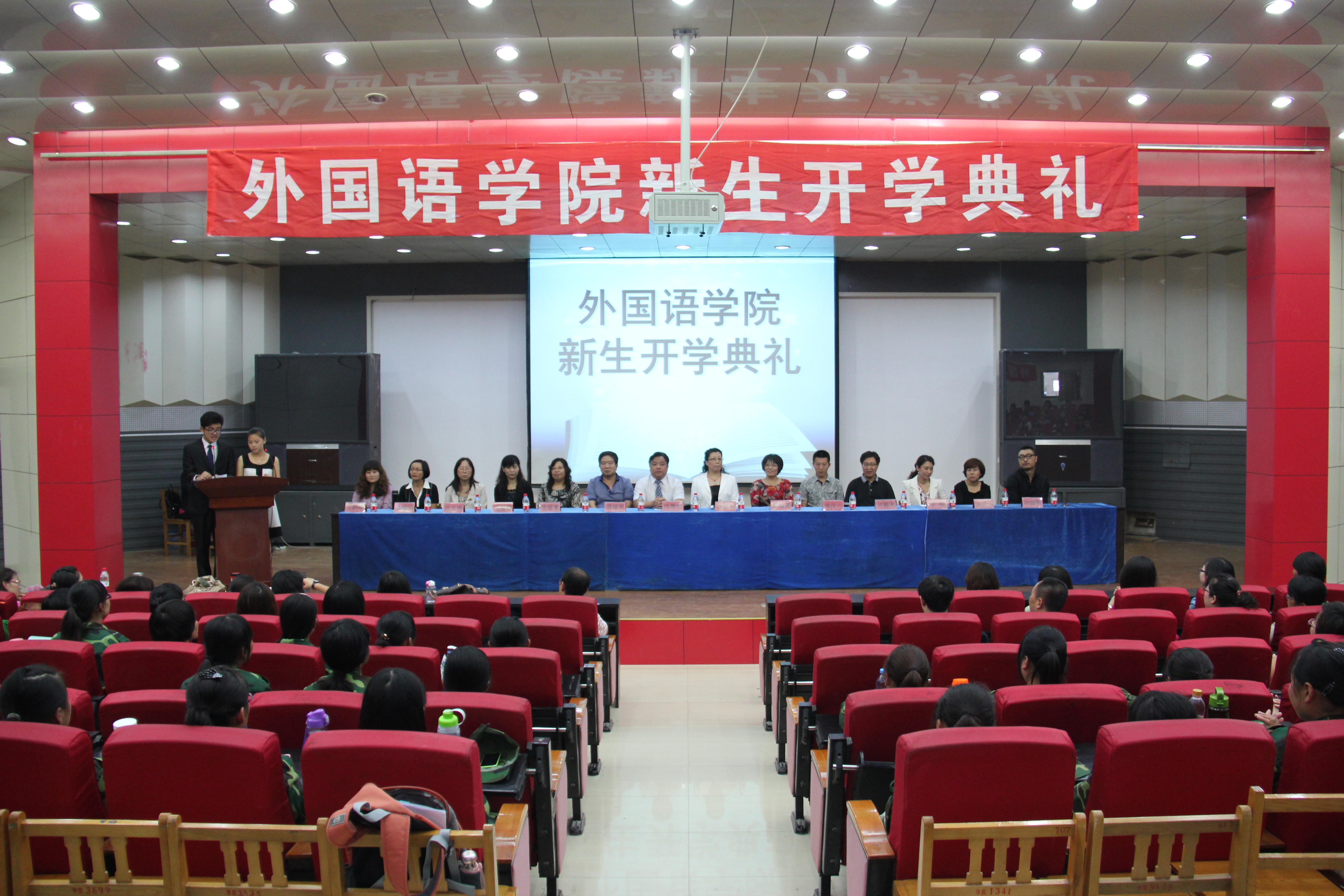 9月12日下午,beat365官方网站在开发区学术报告厅为全体2013级267名新生举行庄严的开学典礼。学院党政领导、全体教师以及2013级全体新生齐聚典礼。开学典礼现场突显beat365官方网站特色,除了现场悬挂英语、意大利语、日语等语言的欢迎条幅营造氛围以外,还采用了汉英双语主持。
