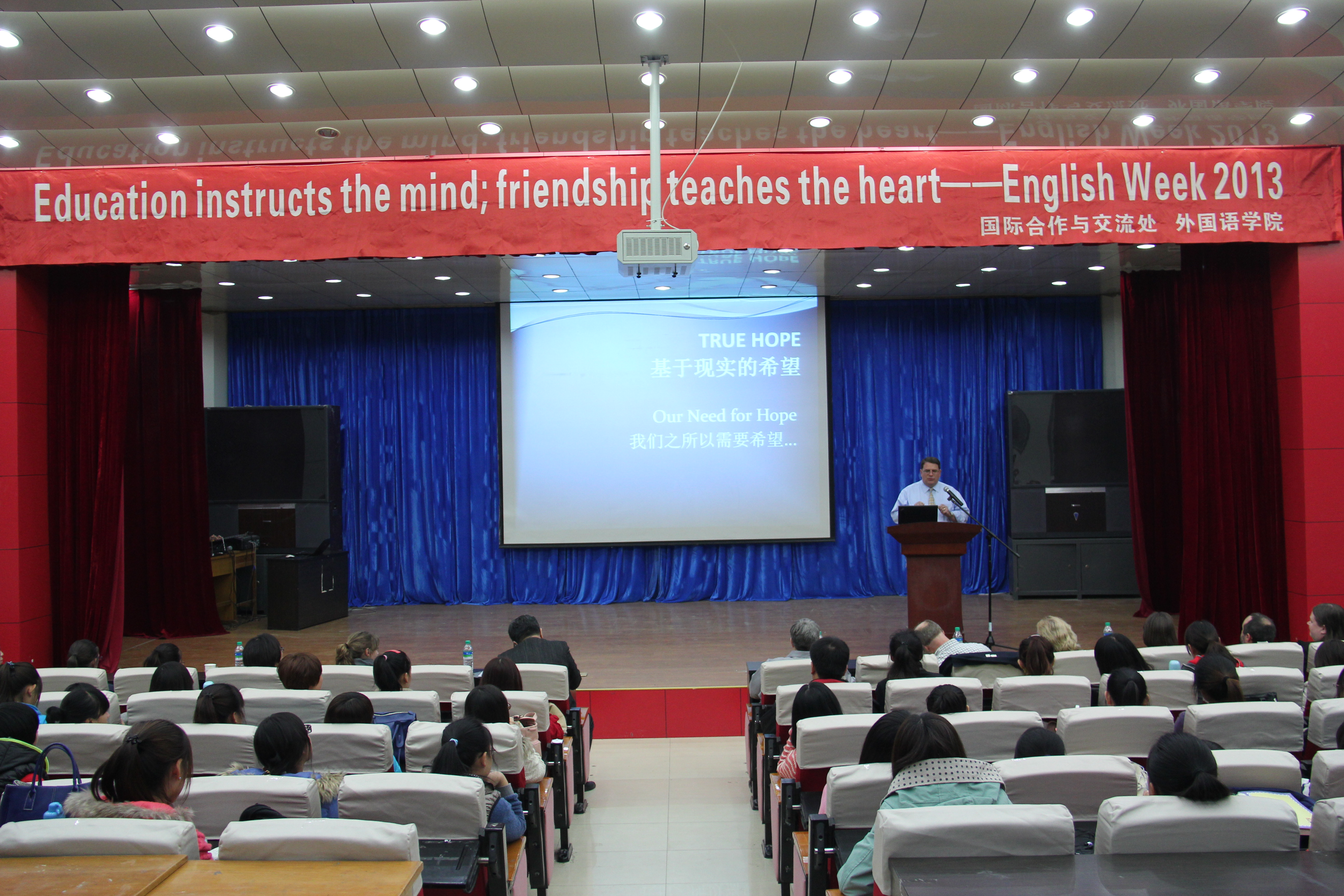 2013年10月25日晚,由beat365国际合作与交流处主办,beat365官方网站承办的“启梦科师2013”系列活动之英语周在开发区校区学术报告厅闭幕。国际合作与交流处、beat365官方网站相关领导及师生400余人参加了闭幕式。