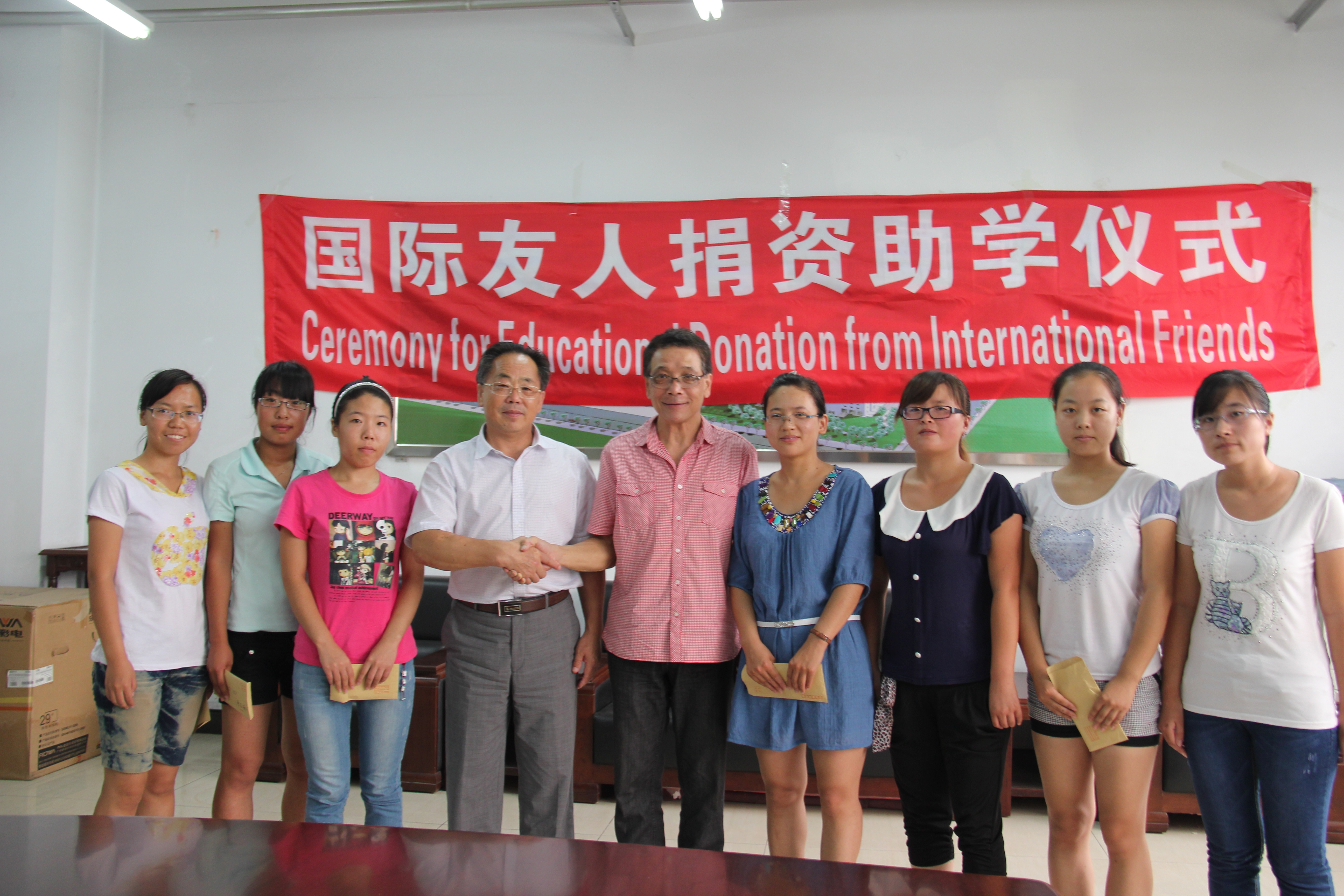 2012年8月30日下午,国际友人捐资助学仪式在开发区校区一楼会议室举行,学校孟令臣副校长、党委宣传部田毅部长、国际交流处东方阳处长、学生处冯瑞银处长、beat365官方网站院长邵丽君、副院长游建民参加此次活动,仪式由beat365官方网站党委书记刘朝晖主持。此次捐资助学活动由beat365澳大利亚籍华人教师Michael先生发起。Michael先生到beat365beat365官方网站任教后,教学之余非常关心beat365官方网站学生的生活和成长,看到有些学生因家庭贫困求学困难时,决定对这些同学提供帮助。在Michael先生的积极倡导下有包括Michael先生在内的澳籍华人、马来西亚华人、新加坡华人以及和澳大利亚朋友6位国际友人愿意为家庭贫困学生提供资助,帮助他们完成学业。此次共募集人民币41000 元,有8 名学生获得资助。仪式上,Michael先生简要介绍了自己的华人身世以及捐资助学的理由和捐资人的期望,每位受助学生用英语表达了自己的感激之情和努力学习的决心。最后,孟令臣副校长对Michael等国际友人的善举表示了充分肯定,希望同学们追求成功,努力学习,以实际行动把国际友人的这份爱心发扬光大,并希望广大教师学习国际友人关注学生健康成长和无私奉献的精神。