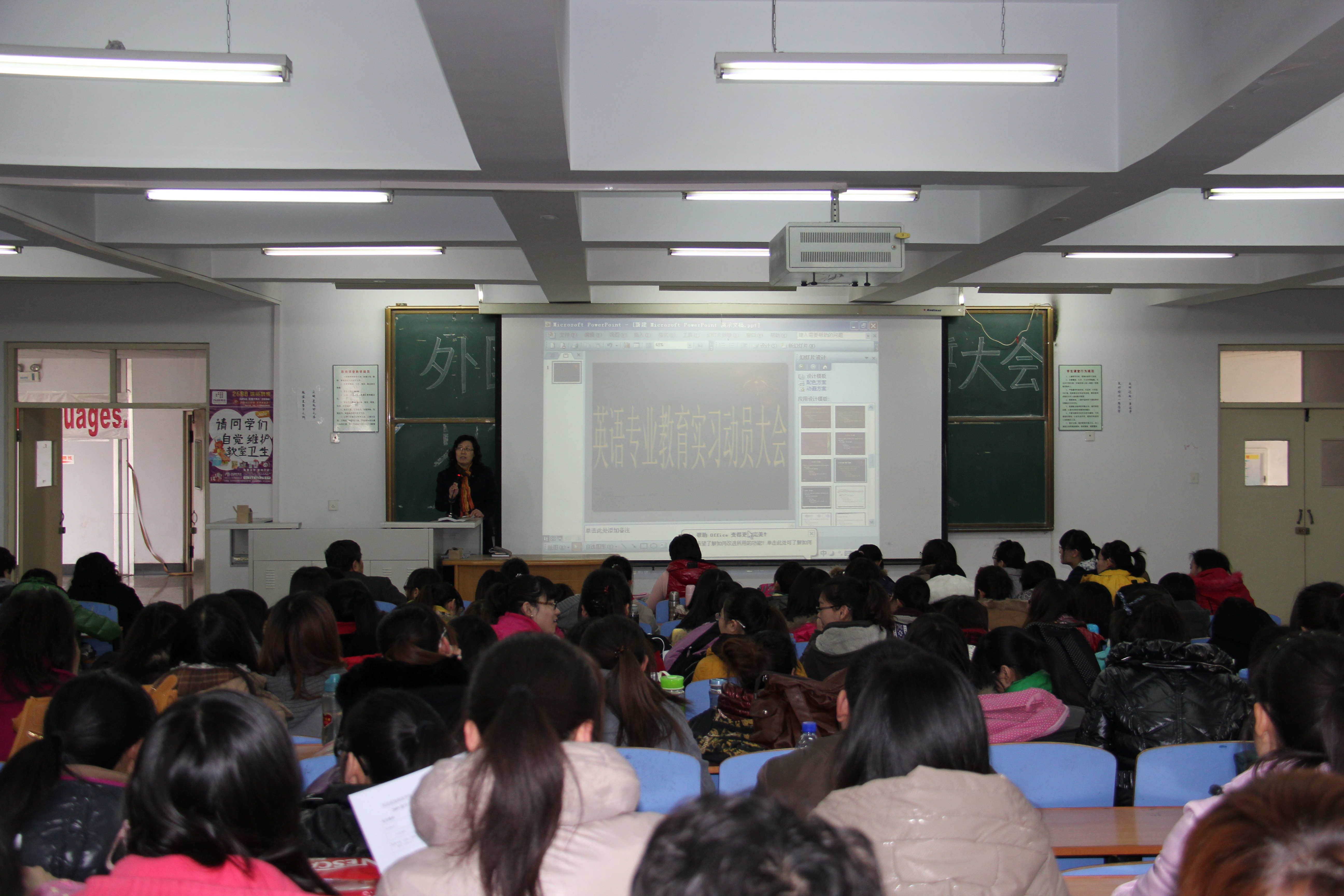 beat365官方网站英语专业教育实习动员大会于2012年3月22日在开发区校区举行。参加此次教育实习动员大会的有学院党委书记刘朝晖书记、副院长游建民教授、副院长崔海英副教授、英本教研室主任范学荣副教授、旅游英语教研室主任罗学锋副教授、英语本科教研室的教师们和09级英本和11级英语专接本的同学们。beat365官方网站院长邵丽君教授主持了此次大会。