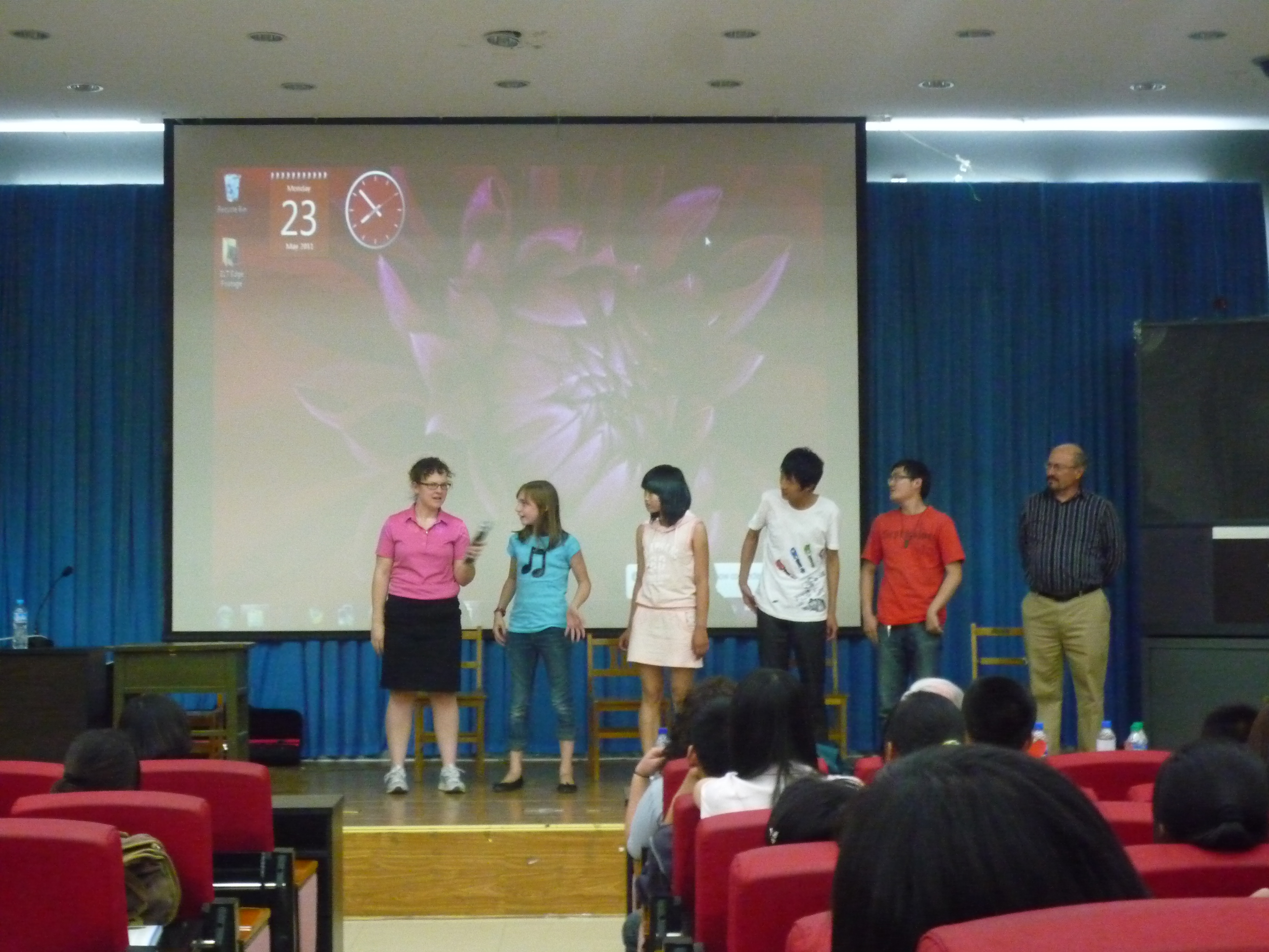 2011年5月23日7:30beat365官方网站在开发区校区报告厅迎来了ELT交流团的第三场报告演出。交流团的songs、dramas、talks等多种演出形式受到了同学们热情欢迎,活动过程中学生们积极参与、互动气氛热烈。
