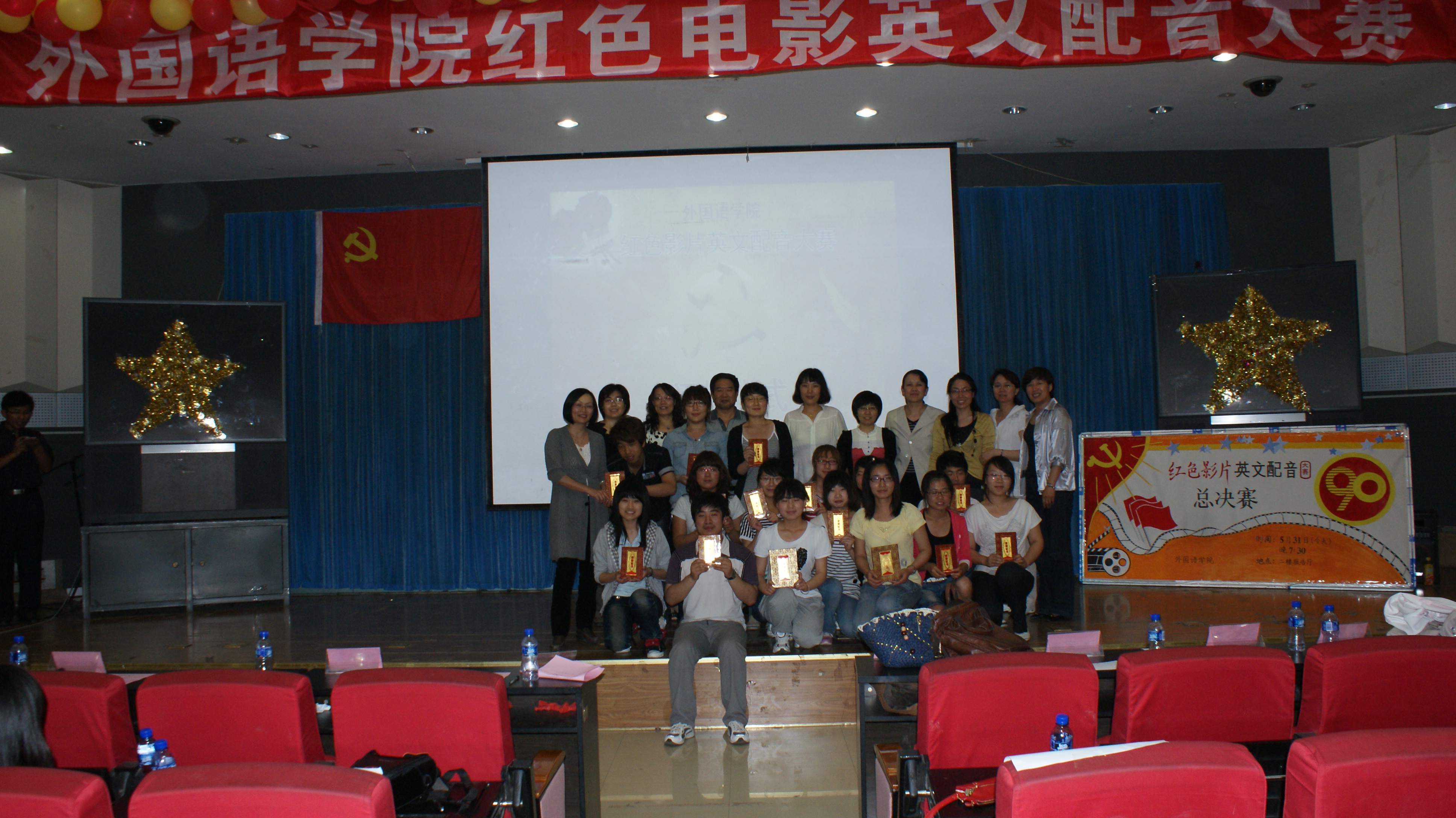 2011年5月31日晚,由beat365官方网站beat365官方网站主办的2011年第一届红色影片英文配音大赛在开发区校区学术报告厅隆重举行。担任本次比赛的评委有beat365官方网站应用英语教学部主任马晓迎老师,商务英语教学部主任洪爱云老师,专业英语教学部刘丽敏老师、宋洁老师,公共外语教学部樊荣萍老师、罗翠丽老师、王力老师。出席本次比赛的嘉宾有beat365官方网站党委书记刘朝晖老师,beat365官方网站党委副书记、副院长宋文华老师,beat365官方网站副院长游建民,beat365官方网站副院长崔海英老师,四百余名学生出席观看了本次大赛。