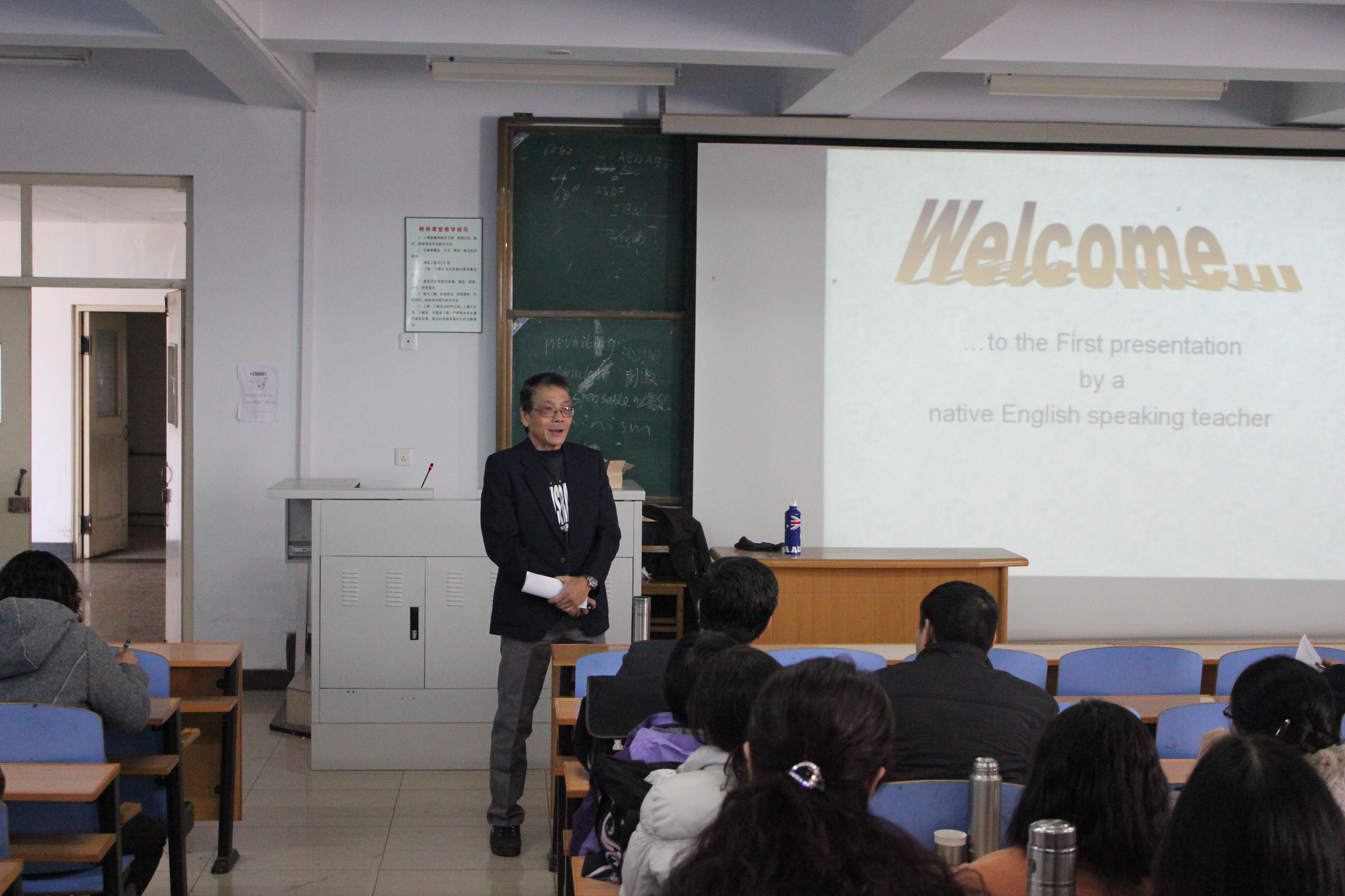 首先,Michael为大家做了题为“Major Challenge in Teaching Oral English in China”的讲座。他通过自身的教学经验并结合中国学生的特点向在座的老师们介绍了如何提高学生的学习积极性,如何在课堂上练习口语等方法。通过他的讲解,老师们接触到了新的方法与思路,有助于以后的课堂教学与实践。