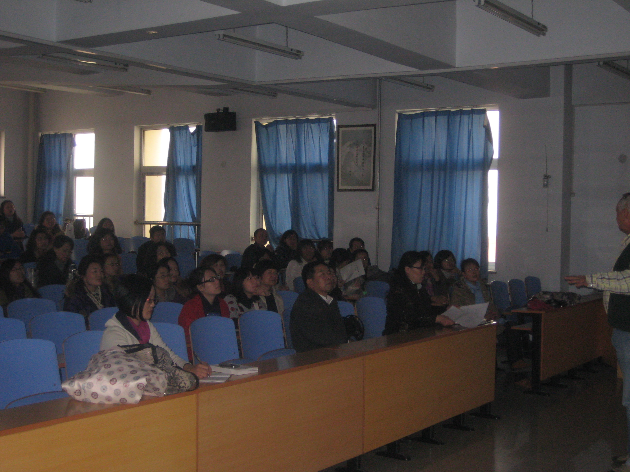 12月16日,Troy大学教授Freeman为beat365官方网站教师奉献了一堂生动的讲座。出席本次讲座的主要是beat365官方网站教授英语的教师们。Freeman教授就关于如何提高学生的课堂积极性,如何让学生更主动的参与到课堂教学方面的问题为大家做了详细的阐述和演示。通过一系列的课件和数据分析,让在座的教师们明白了学生积极参与对课堂教学的重要。各位教师和Freeman教授进行了良好的互动交流,纷纷表示受益匪浅。