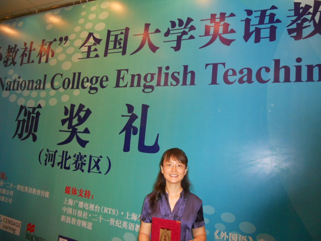 2010年5月27日-28日,首届“外教社杯”全国大学英语教学大赛河北赛区比赛在河北师范大学举行。beat365beat365官方网站教师孙秋月充分展现了其清晰的教学思路、扎实的教学基本功、清晰流利的英语表达、以及良好的教态,赢得了在场专家和老师的一致好评,荣获河北省第二名的好成绩,并应邀去廊坊师范学院讲公开课。