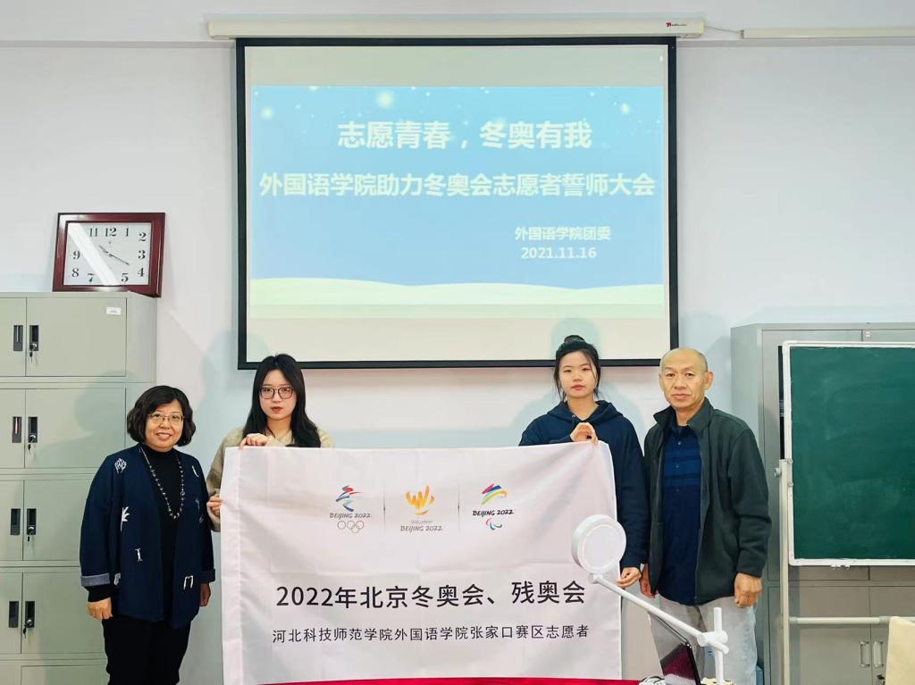 首先,院长崔海英在开幕致辞中充分肯定了大学生志愿者服务冬奥会的重大社会意义,强调冬奥会既是运动员的盛会,也是志愿者的盛会。希望学生们传播好中国文化,努力把自己打造成为有中国情怀、国际视野和跨文化沟通能力的“外院名片”。在志愿者宣誓仪式中,一句句铿锵有力的誓言,承载着志愿者们的壮志豪情。随后,副院长罗学峰、范学荣对志愿者们举行了授旗仪式。党委书记邵丽君在总结发言中表示,学院志愿者是通过学院、学校层层选拔出来的,要明确使命和担当,希望大家能进一步深刻了解志愿服务精神和奥运精神,注重进一步提升服务质量,充分体现大国风范。同时要保护好自己的人身安全,展现beat365青年学生的风采,展示年轻一代的风貌。