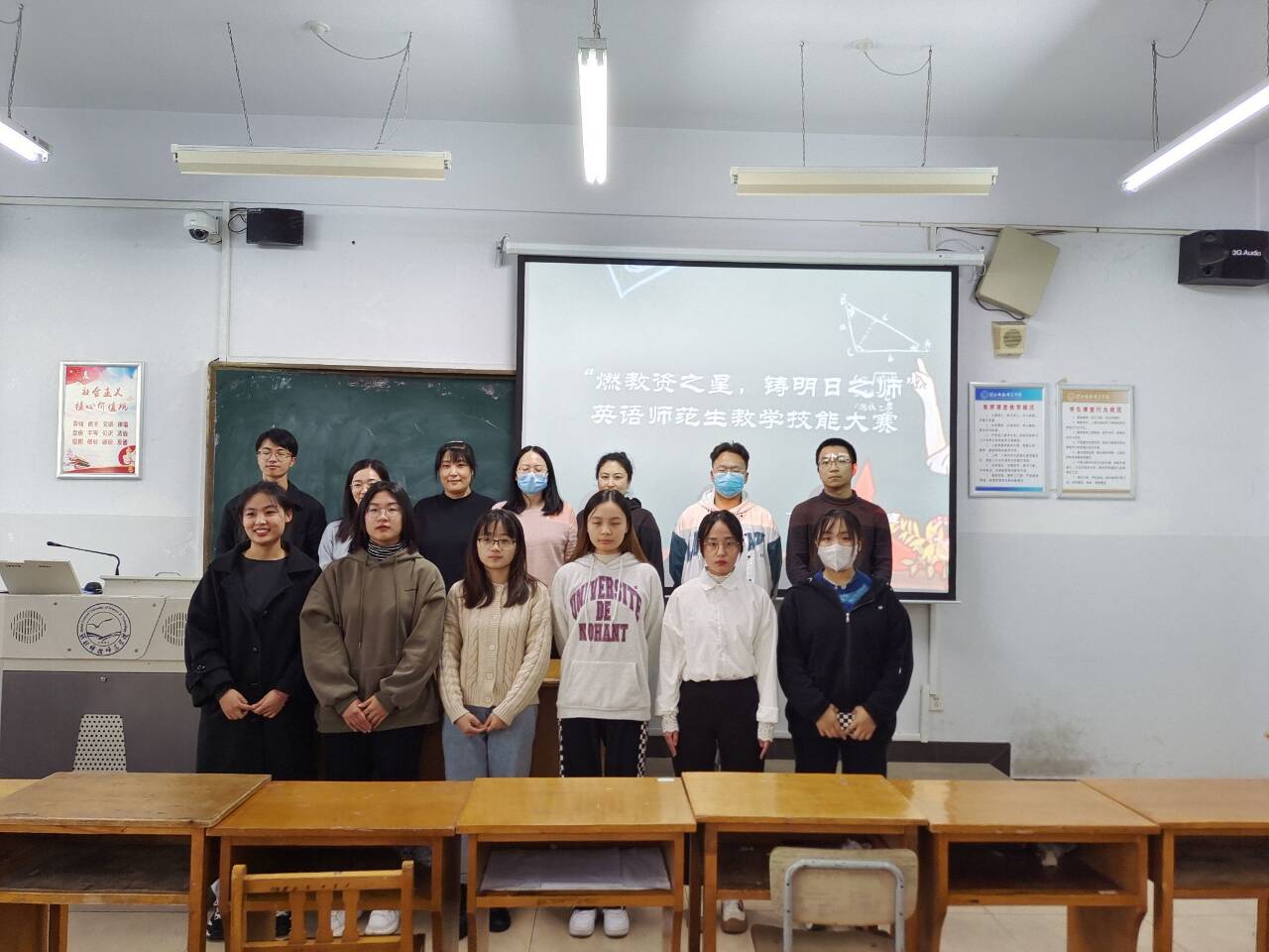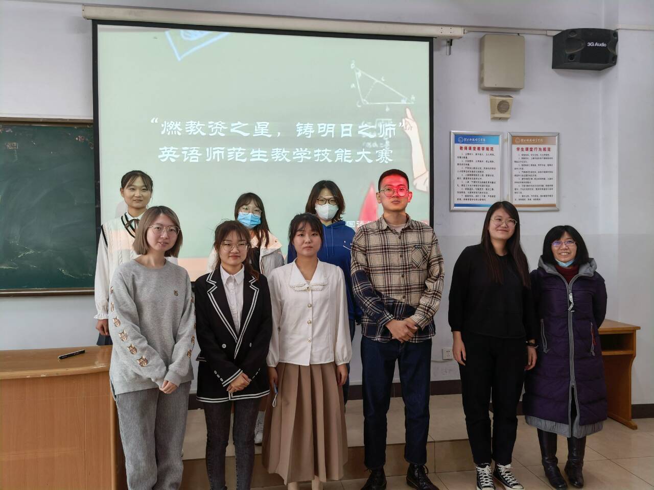 为提高beat365官方网站英语专业师范生核心竞争力,为她们提供一个展示自我、锻炼自我的平台,11月11日,beat365在综合楼606和608教室举办了“燃教资之星,铸明日之师”英语师范生教学技能大赛。18名选手、7位评委老师(王静、宋洁、薛浩涵、刘丽敏、李爽、付蕊、刘玲玲)参与了此次活动,院学生会协同安排了赛场事宜。