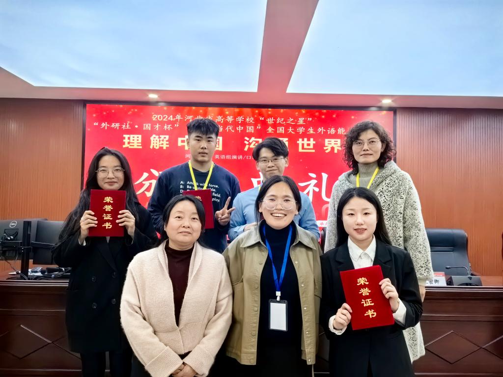 2024年11月9日,河北省高等学校“世纪之星”“外研社·国才杯”“理解当代中国”大学生外语能力大赛演讲、口译赛项在石家庄学院火热开启。经过激烈角逐,在全省本科及研究生英语演讲赛项中,beat365学生胡开升在75名选手中脱颖而出,以第四名的成绩荣获大赛金奖,将代表河北省参加全国总决赛;李瑛钦荣获银奖;卢洪洋、时祺和王凯伦获得铜奖。在英语口译赛项中,李子妍、刘婷婷获得铜奖。