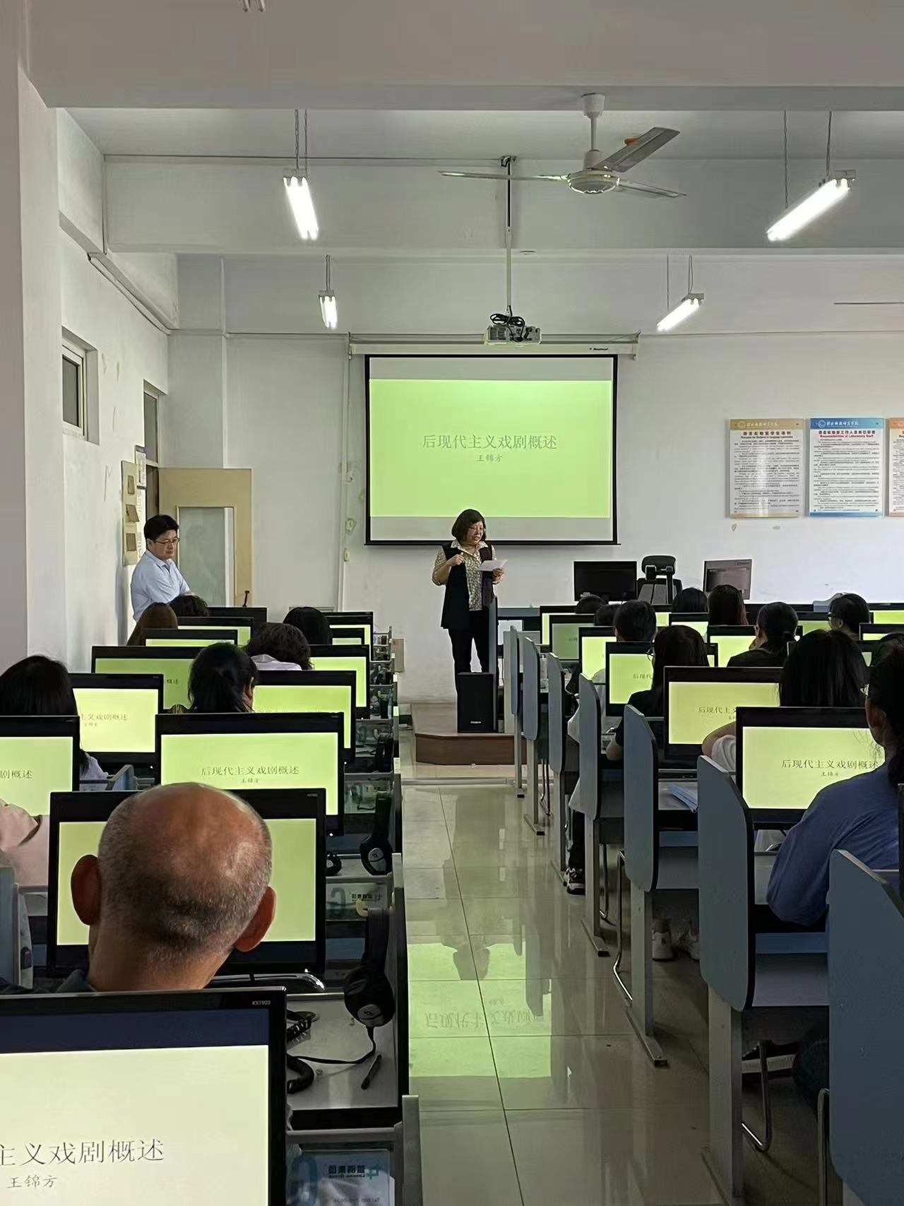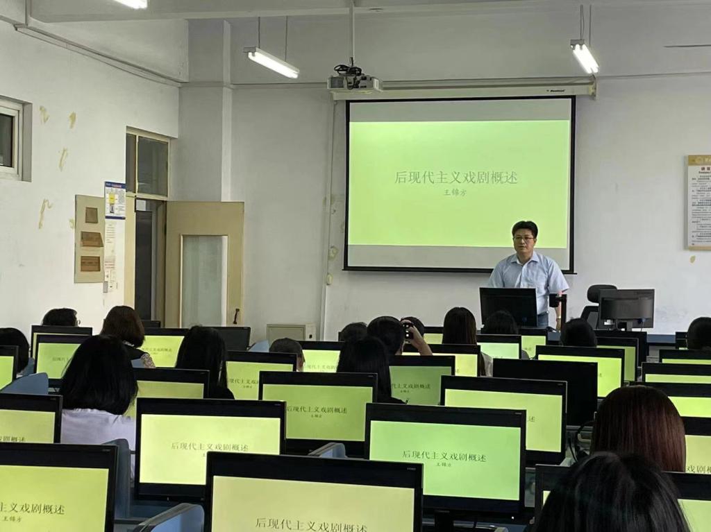2024年5月30日beat365官方网站邀请王锦方博士主讲题目为《后现代主义戏剧概述》的学术报告。外语学院英本教学部教师、学科教学(英语)教学部教师及硕士研究生、对英美文学感兴趣的教师参加了此次报告。